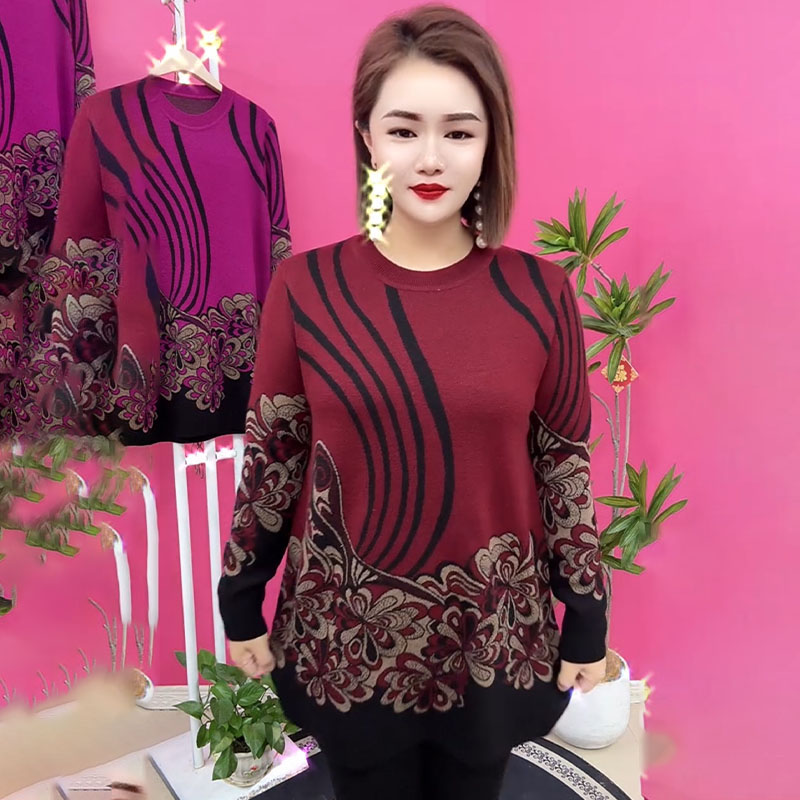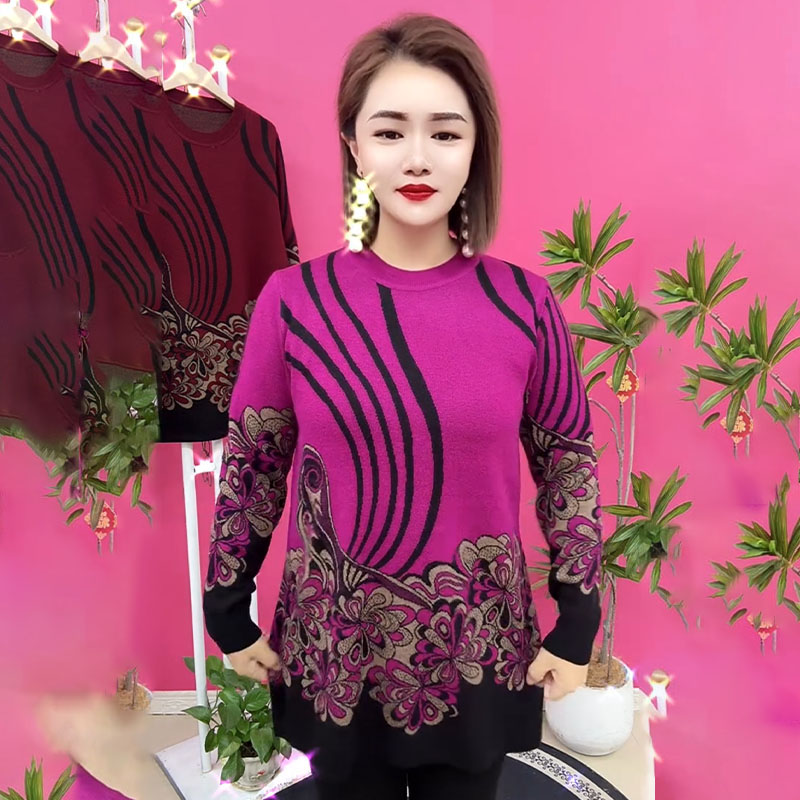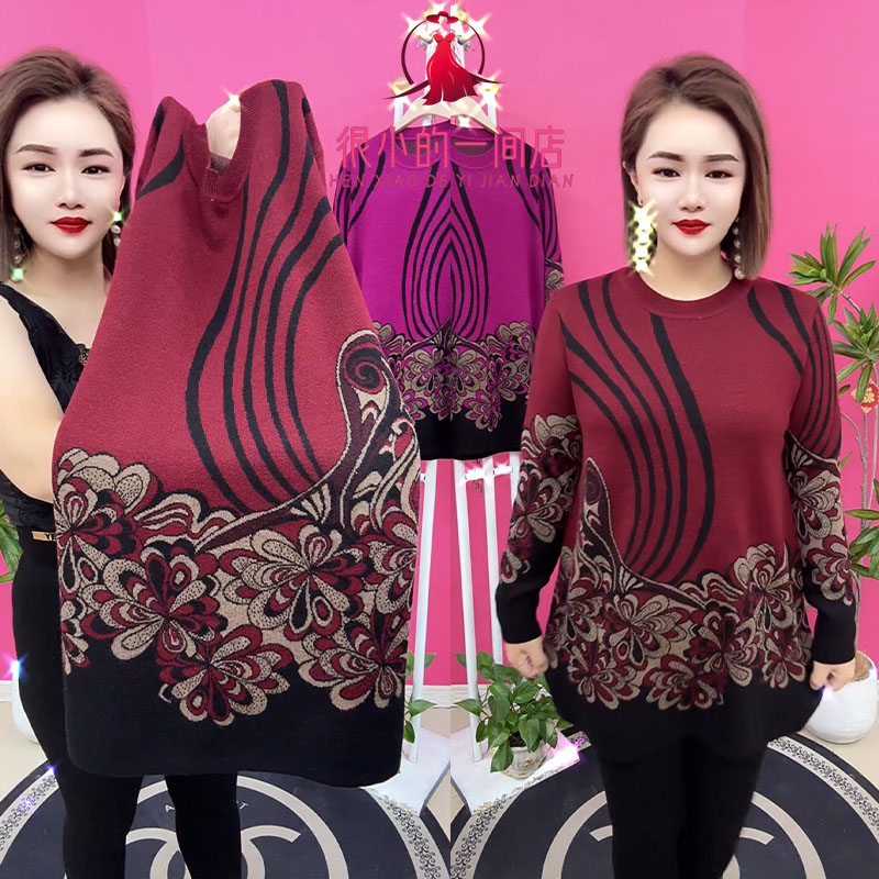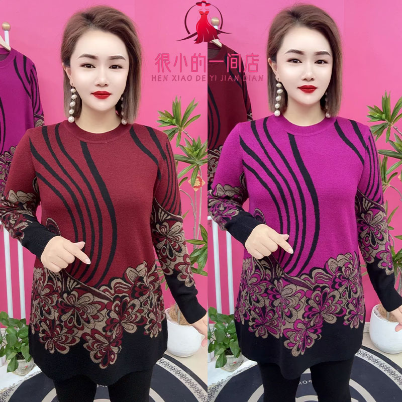 2025年秋冬爆款提花连衣裙女宽松百搭高档中年妈妈装中长款打底裙