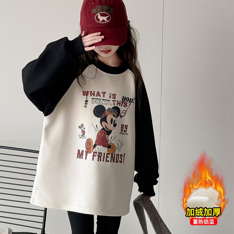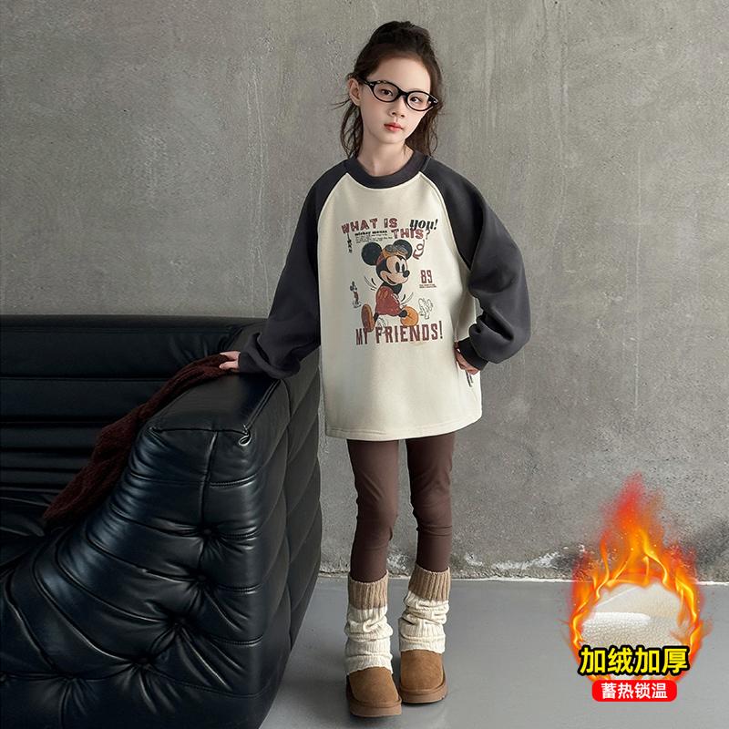 女童加绒卫衣2025秋冬新款女中大童加厚一体绒打底衫儿童卡通上衣