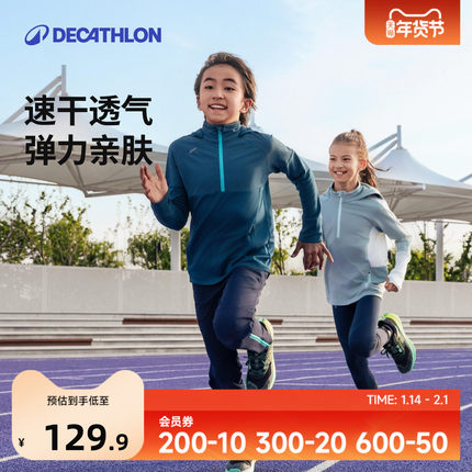 迪卡侬T恤速干衣儿童运动透气春季上衣男童女童舒适长袖卫衣KIDC