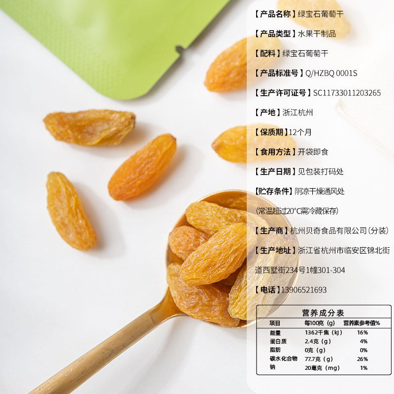 贝乐滋-绿宝石葡萄干0添加新疆特产绿葡萄提子干健康营养小包装