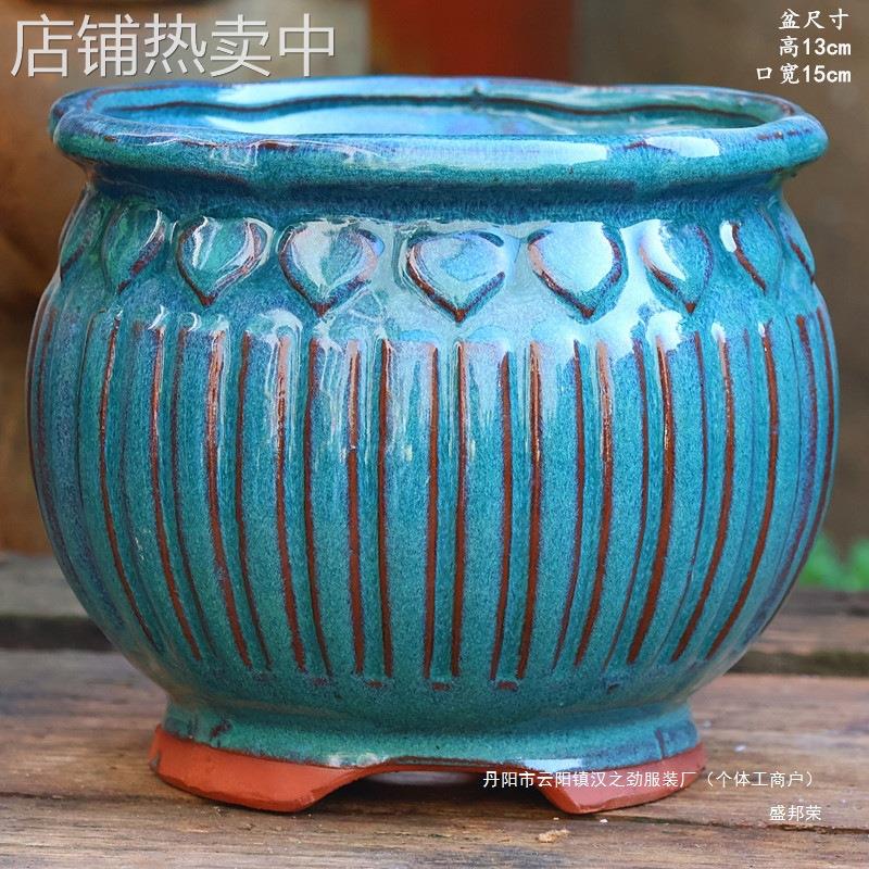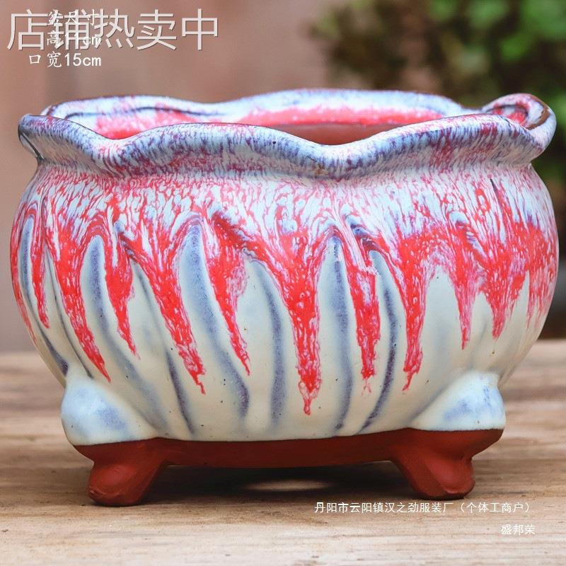 手绘拼盘花盆粗陶植物花盆口径创意紫砂陶盆粗陶瓷大透气多肉薇妍