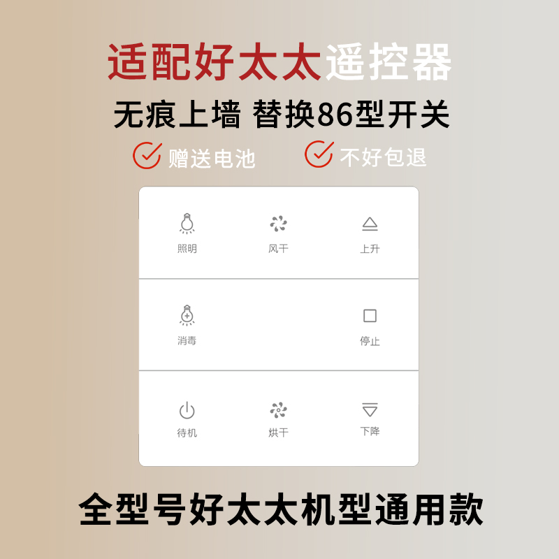 适用好太太晾衣架多功能隐形单双杆语音遥控220V壁控开关86型面板
