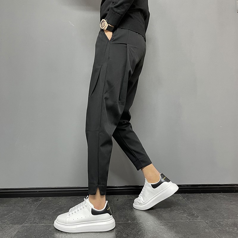 春秋休闲西裤男宽松垂感阔腿九分裤子男夏季潮流薄款哈伦小脚裤