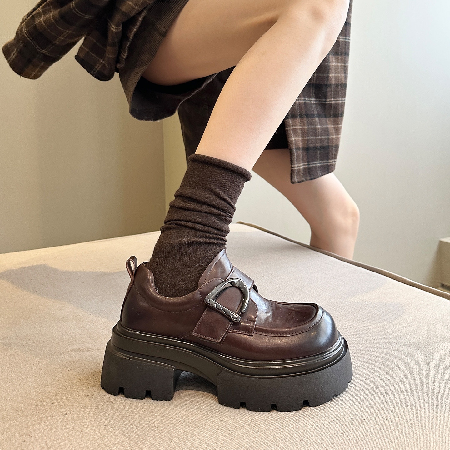 小个子的真爱~日系牛皮配堆堆袜增高厚底乐福鞋女鞋单鞋jk小皮鞋