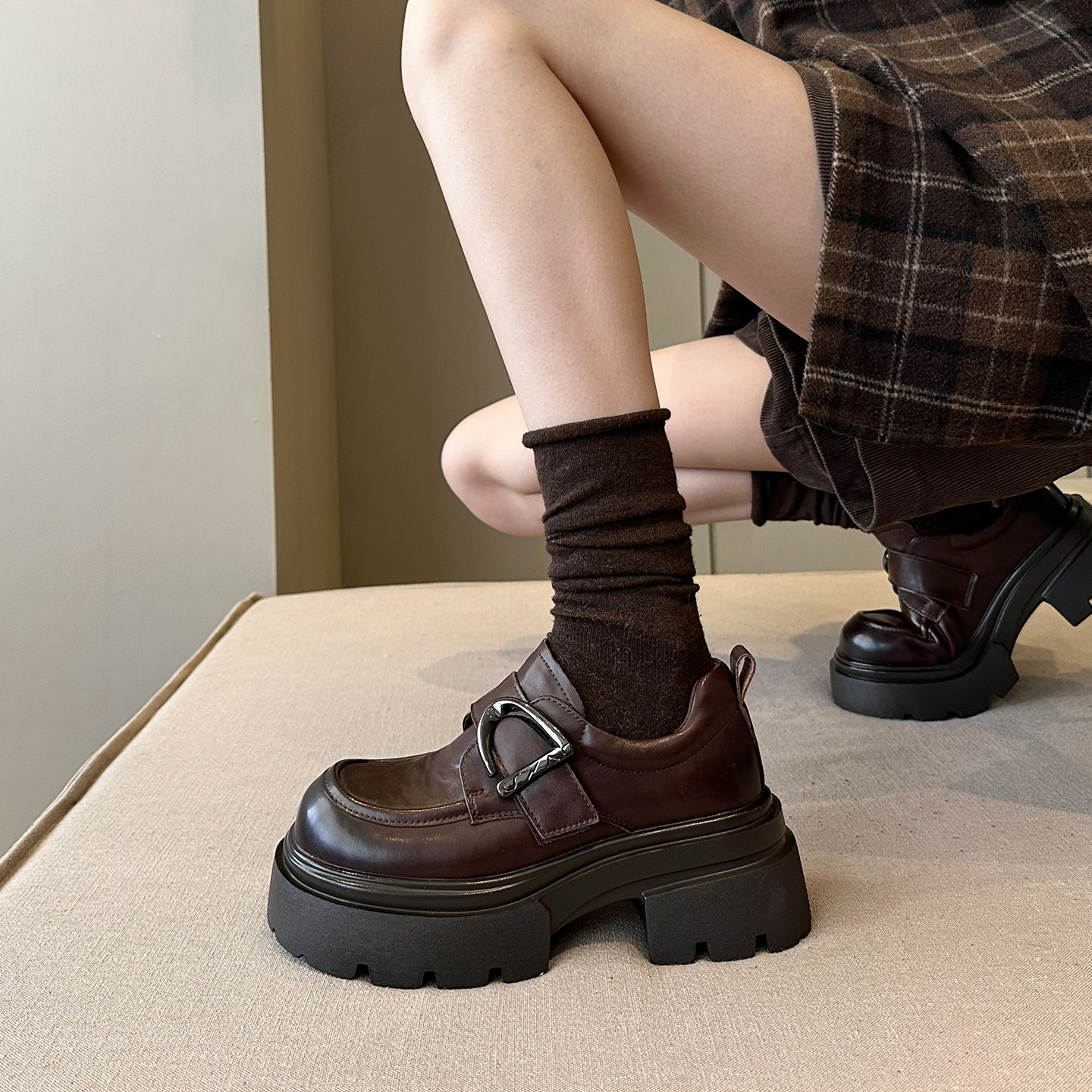 厚底乐福鞋女2025秋冬新款小皮鞋