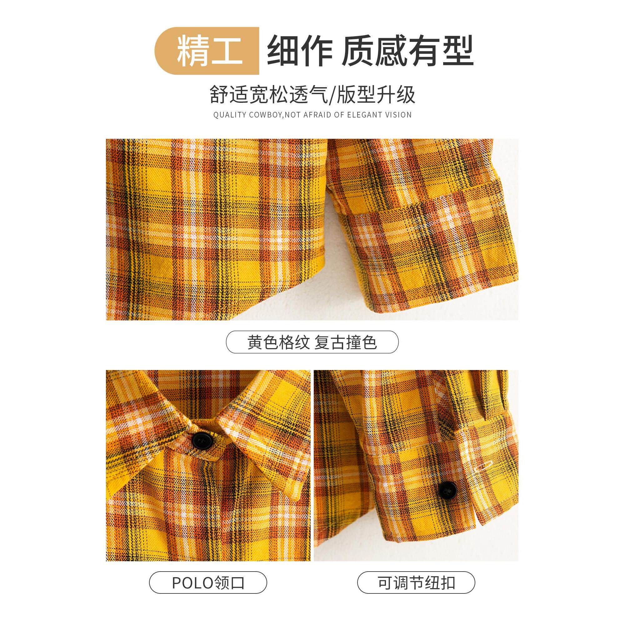 黄色格子叠穿防晒长袖衬衣