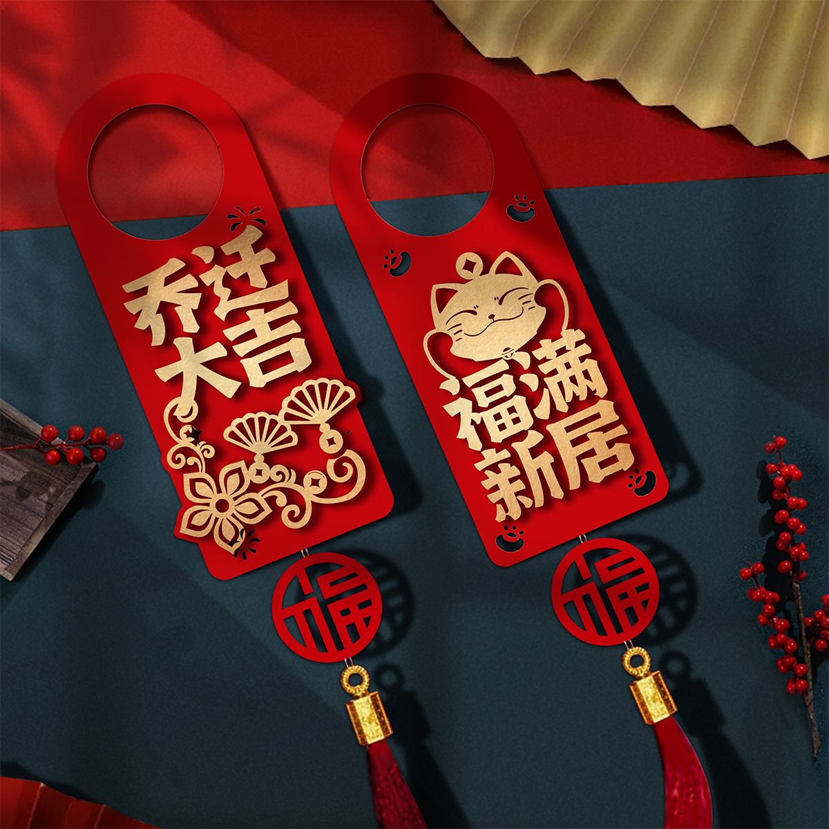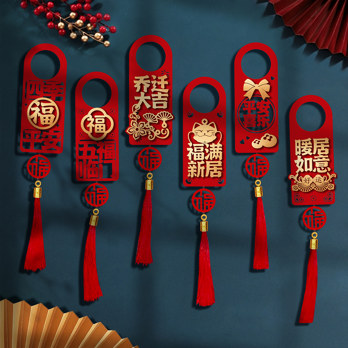 乔迁之喜门把手小挂饰新居入宅搬家装饰入伙仪式用品进宅门锁挂件