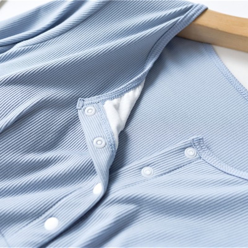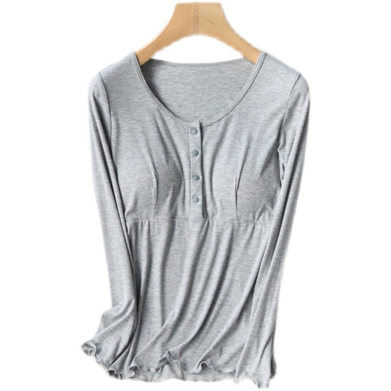 孕妇产后哺乳上衣春秋喂奶睡衣长C袖打底衫秋衣月子服单件居家胸