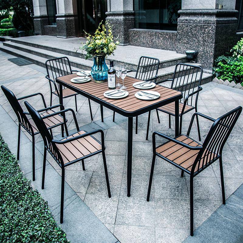 户外铁艺塑木组合桌椅子咖啡厅奶茶店阳台公园庭院露天室外小桌椅