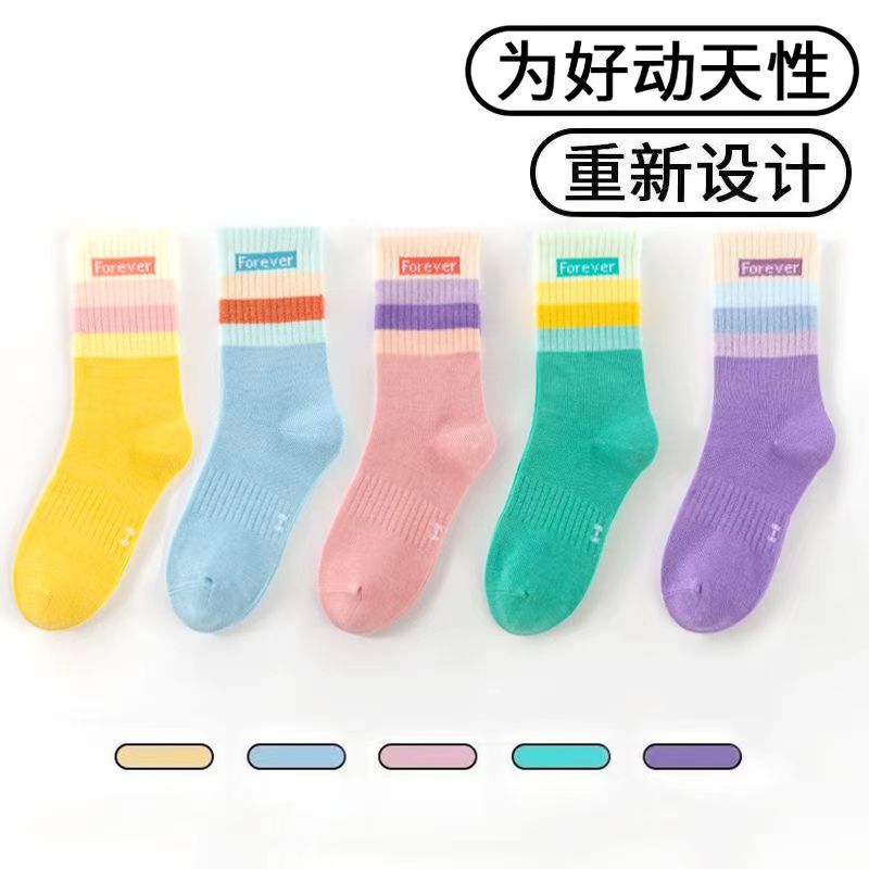 女童袜子春夏秋儿童袜子纯棉男童中筒运动袜透气吸汗女孩无骨袜子