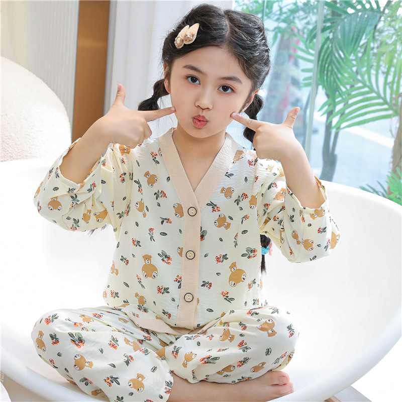2025新款春秋季女童睡衣套装云朵棉长袖薄款公主风女孩儿童家居服