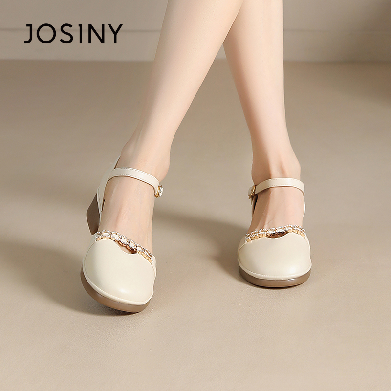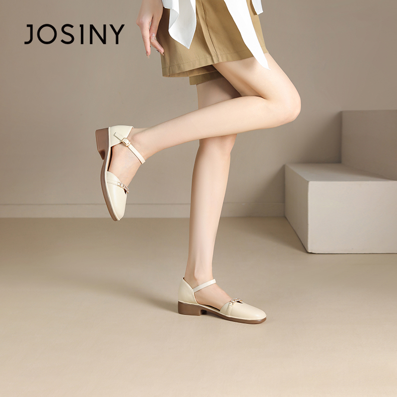卓诗尼2025年秋夏新款女鞋平底单鞋软底浅口包头包跟凉鞋子一字带
