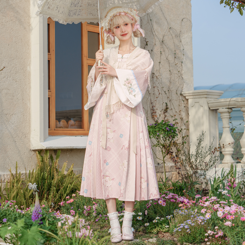 森女部落原创小羊印花粉色马面裙八分甜妹少女汉洋折衷叠穿半身裙