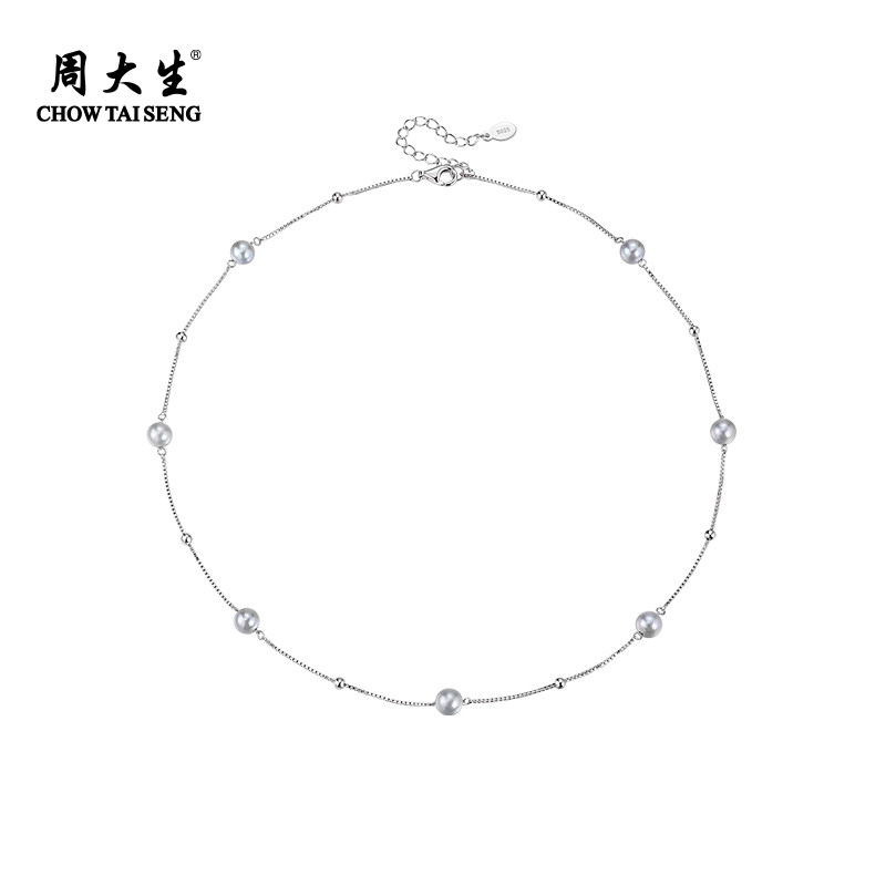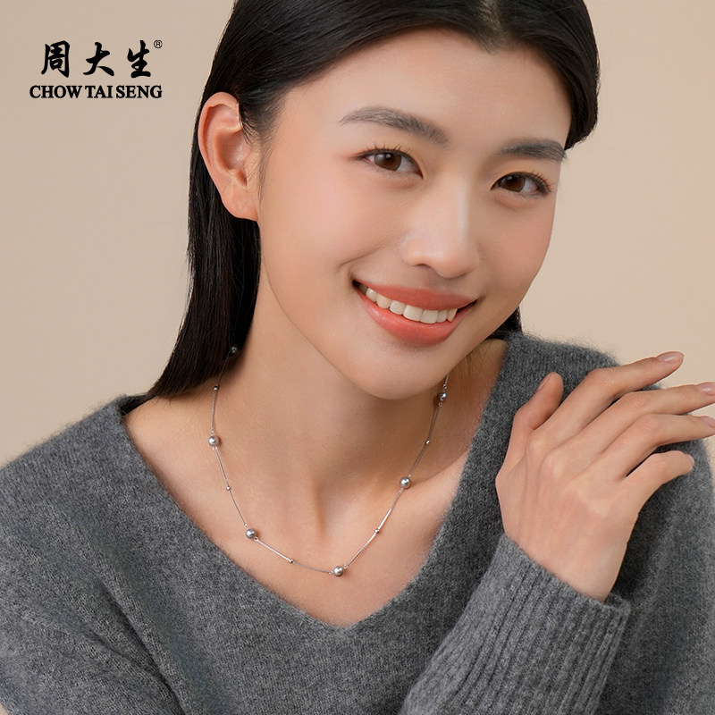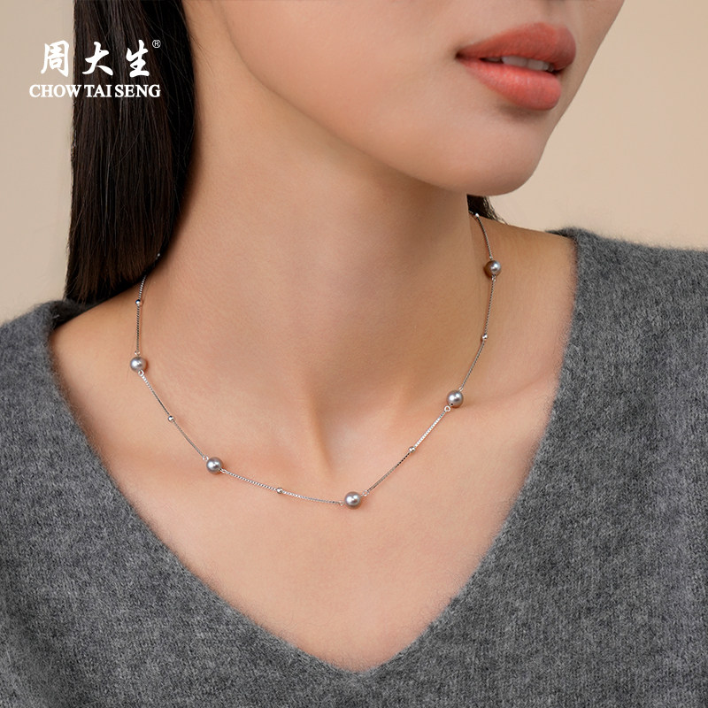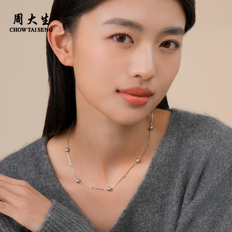 周大生满天星akoya海水珍珠项链正圆强光海水珠颈链百搭锁骨链