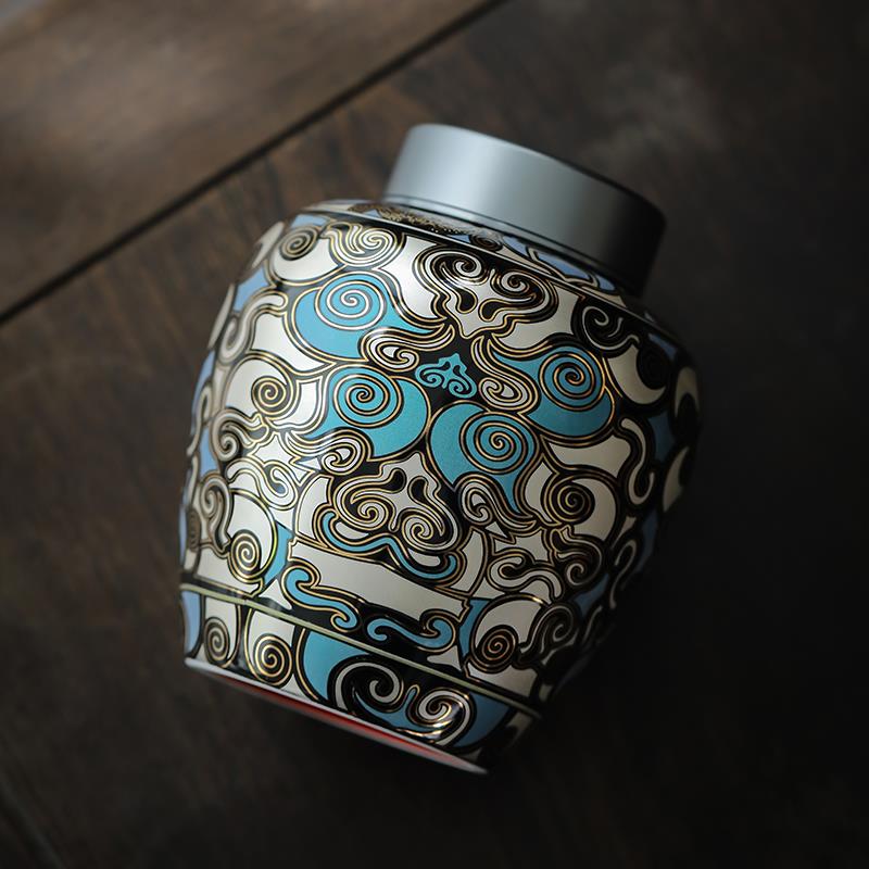 金银错合金茶叶罐精品高档密封陶瓷大号家用储存罐白茶普洱存茶罐