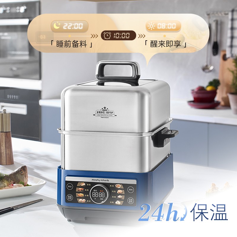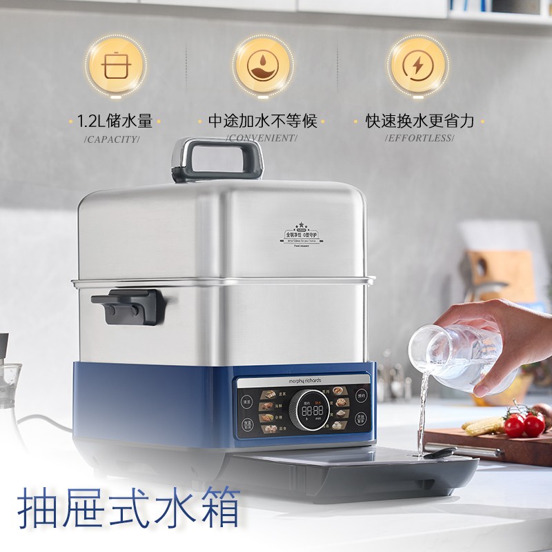 摩飞急速电蒸锅二层家用不锈钢多功能蒸炖一体锅全自动蒸汽MR1178