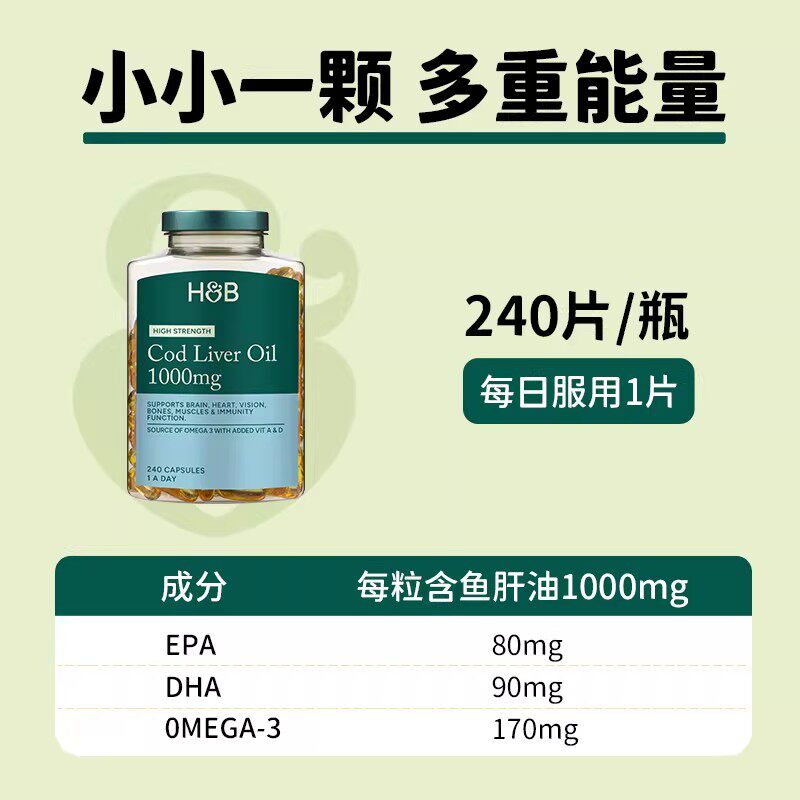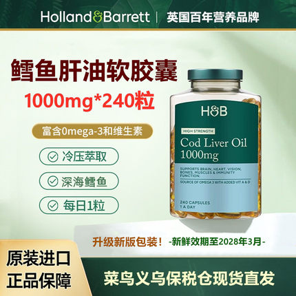 英国进口HB荷柏瑞鳕鱼肝油软胶囊240粒DHA维生素AD成人中老年营养