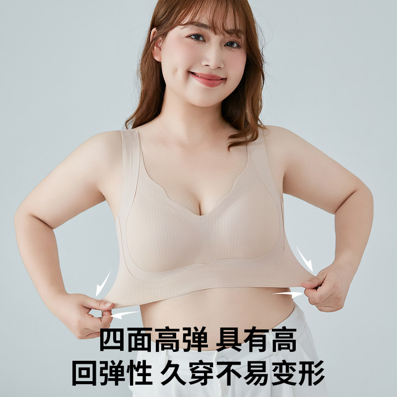 无痕内衣女胖mm大胸显小薄款聚拢防下垂收副乳大码粉底液运动文胸