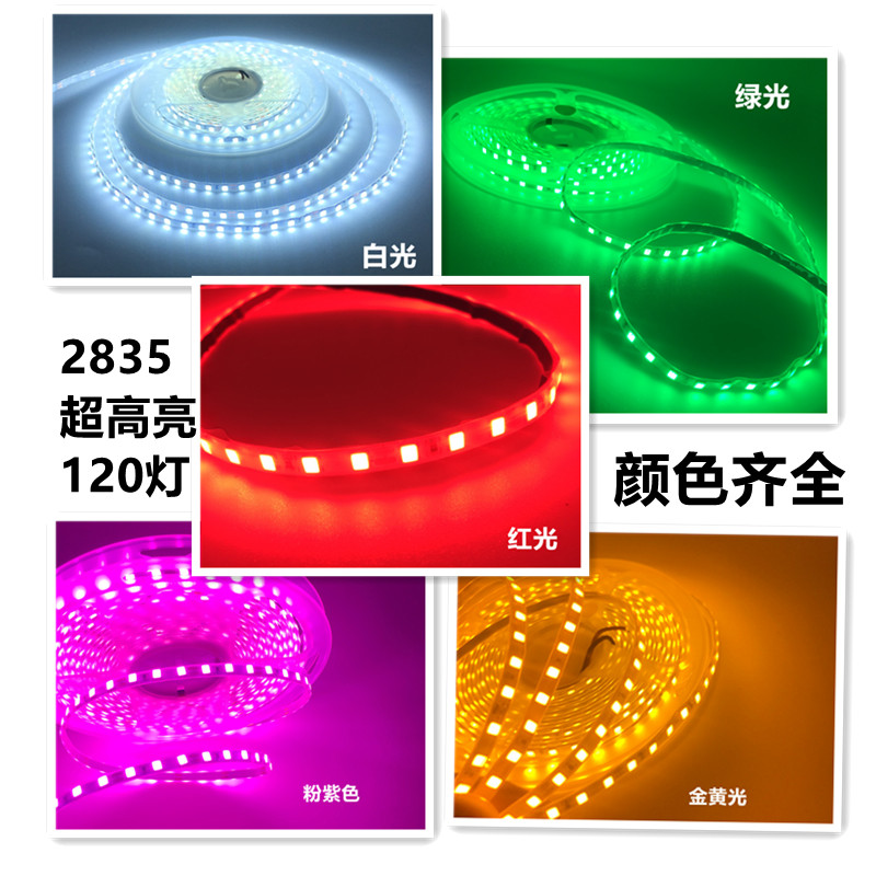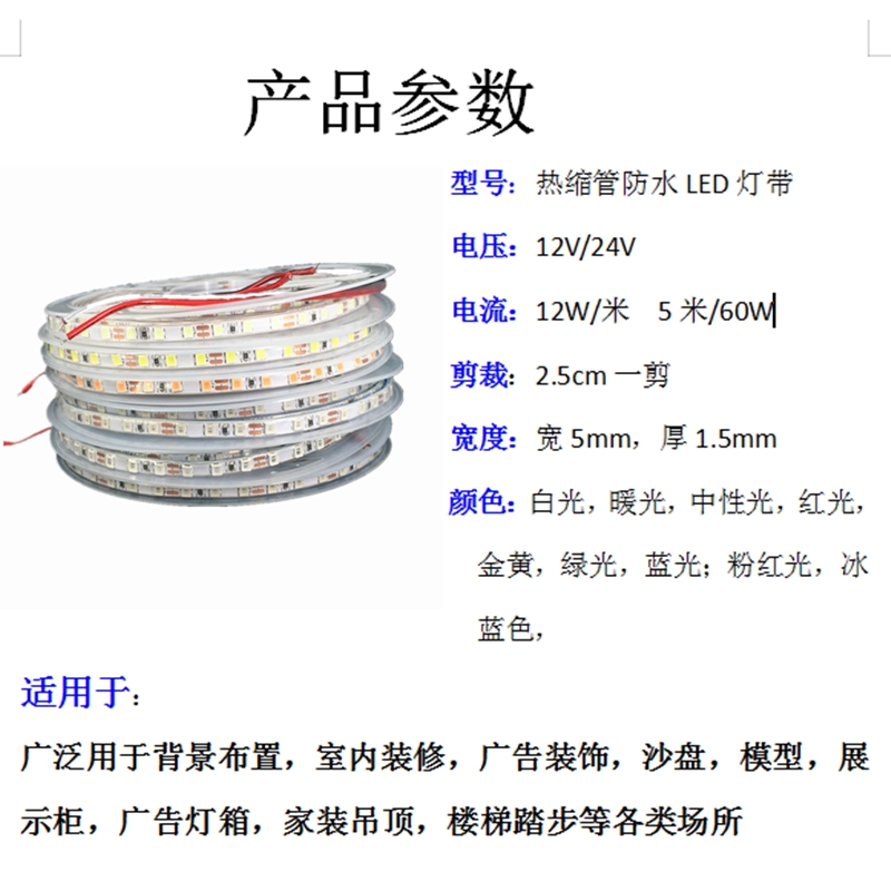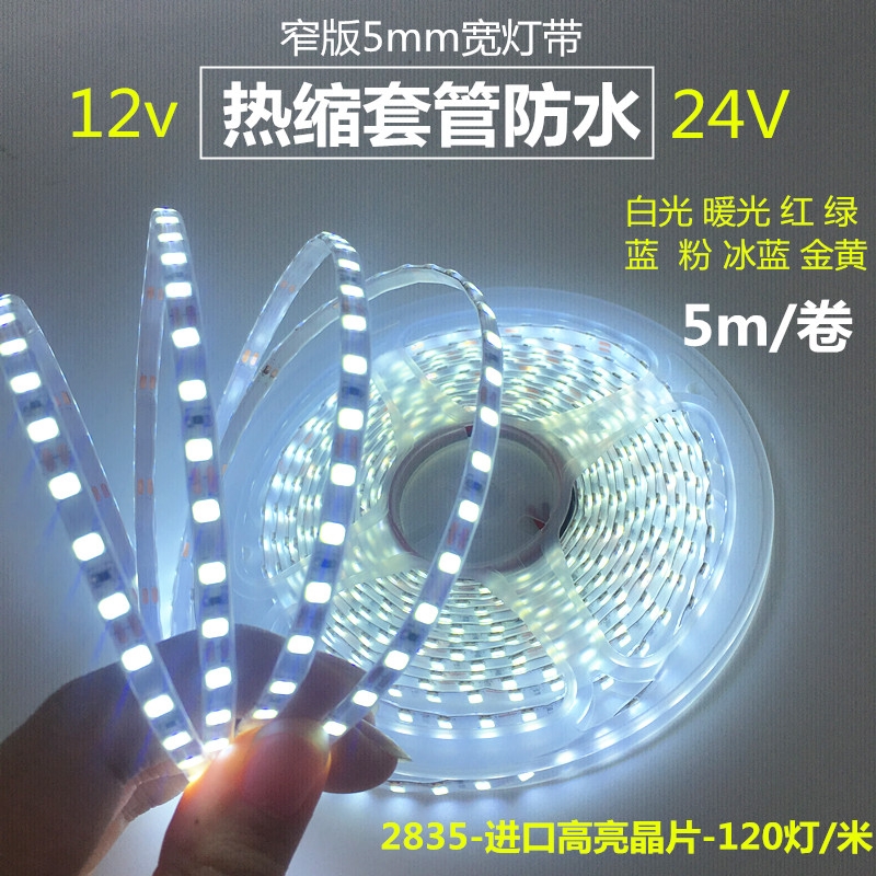 超窄灯带12v2835热缩管防水24v白光led软灯条红蓝色贴片5mm宽沙盘