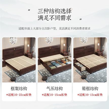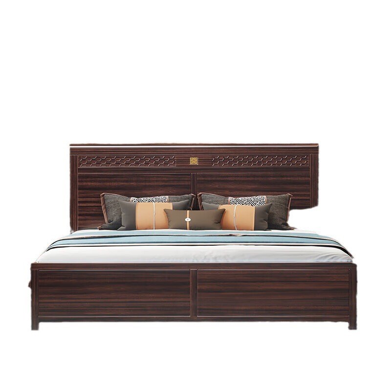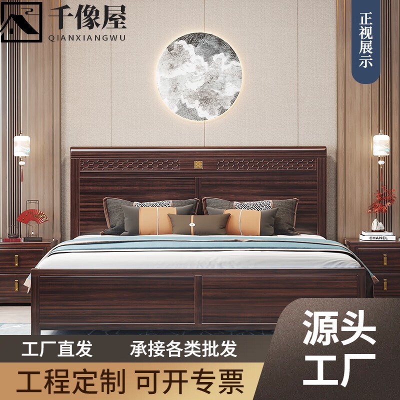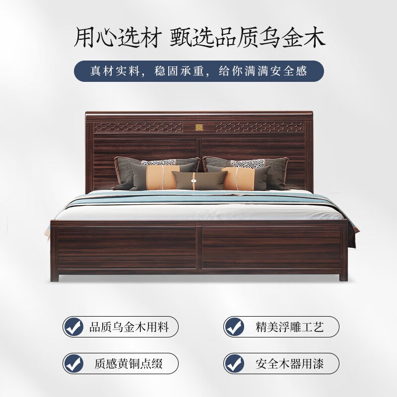 新中式乌金木实木床1.8米双人床大J户型别墅卧室家具主卧婚床