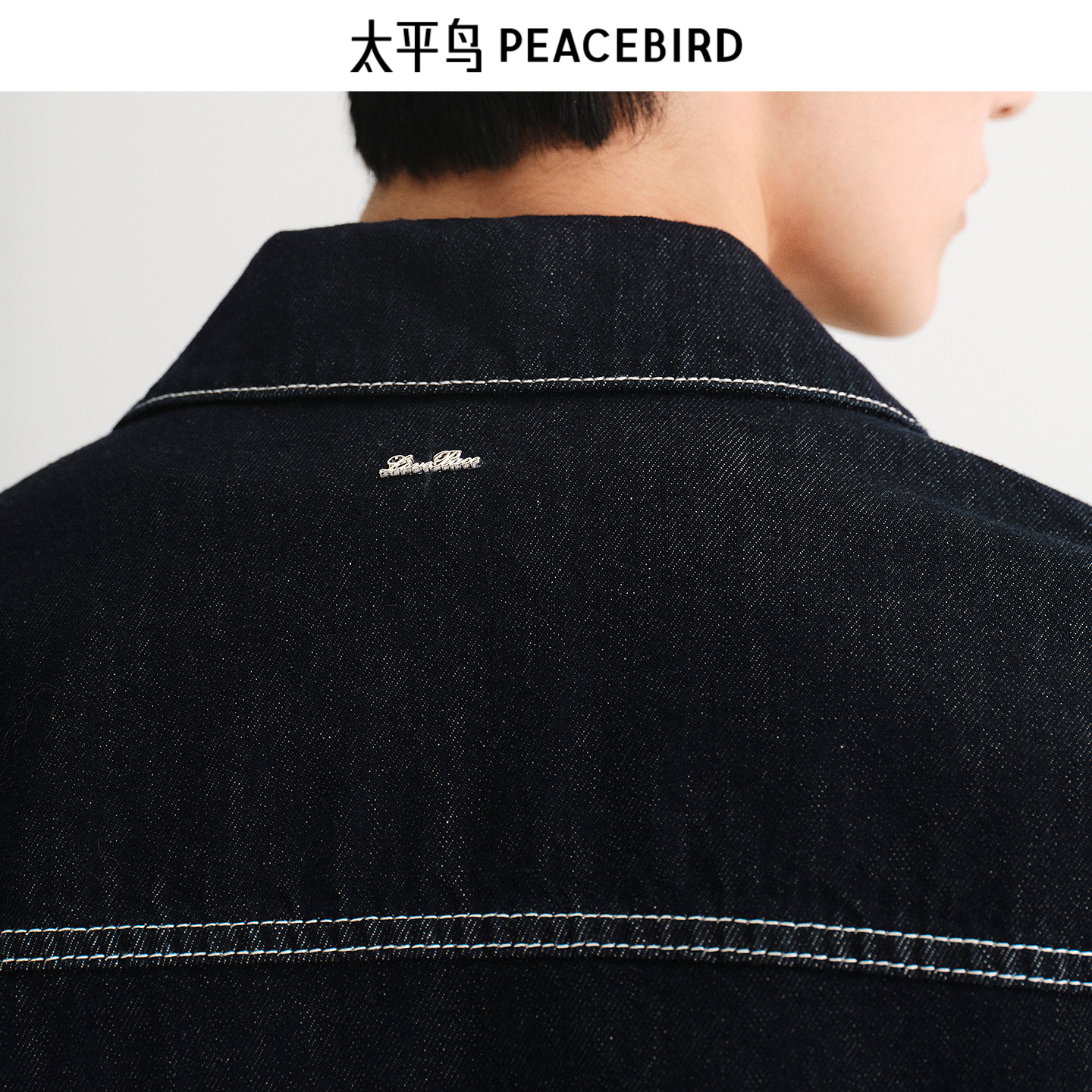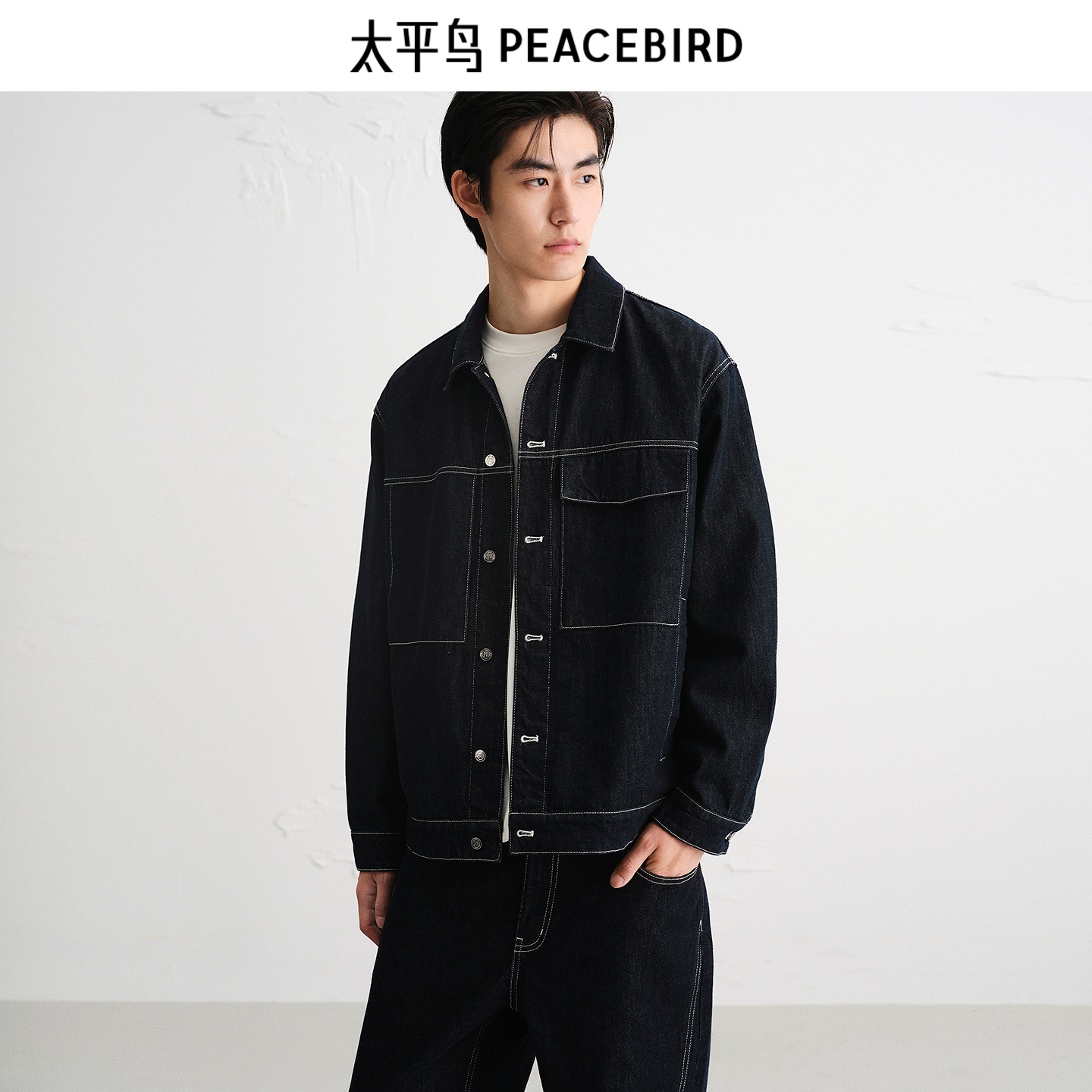 太平鸟男装夹克25秋季宽松牛仔外套复古原牛明线潮户外口袋M