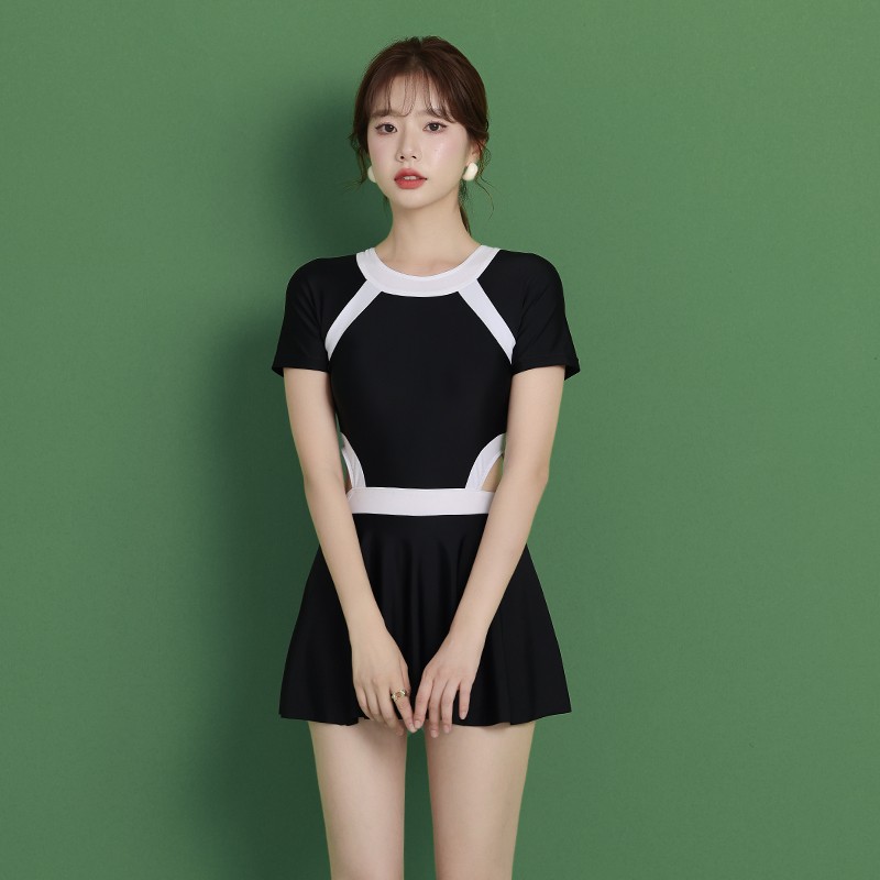 连体泳衣女2021年新款s时尚泡温泉保守遮肚显瘦小胸平角裙式游泳