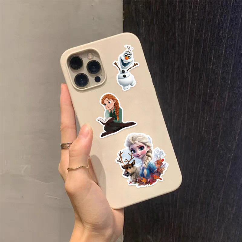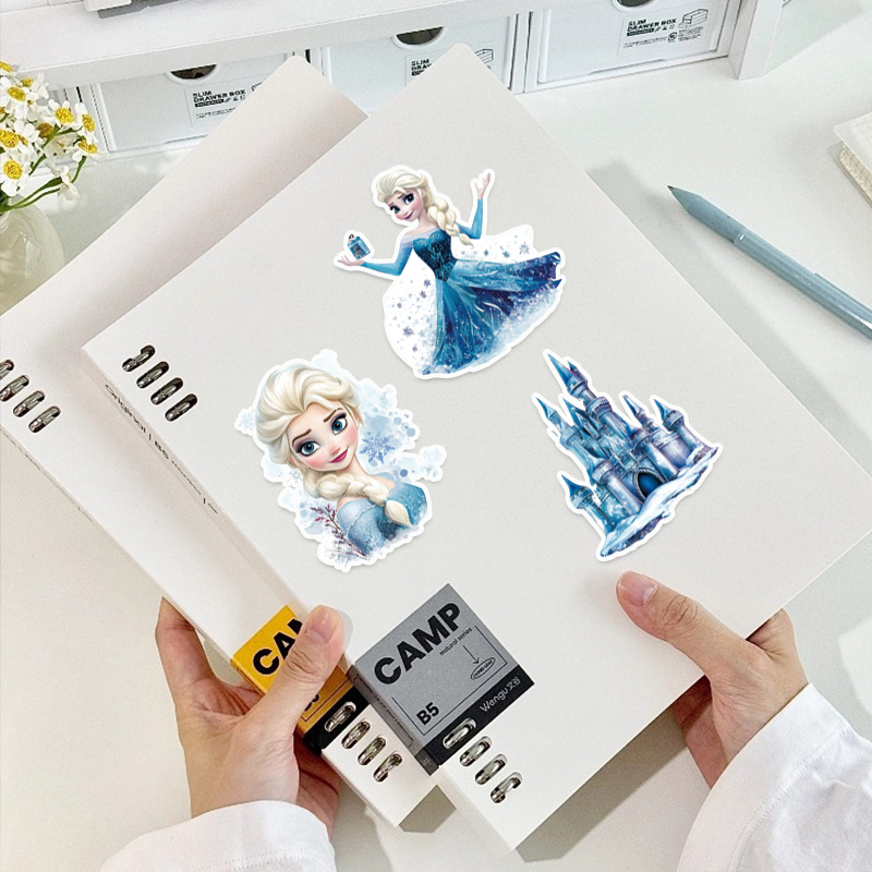 50张冰雪奇缘贴纸艾莎公主安娜雪宝电影周边迪士尼动漫儿童玩具盲盒城堡保温杯手账手机壳diy防水创意贴画