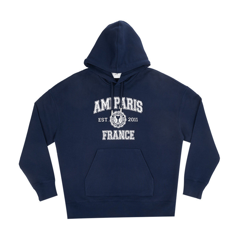 AMI Alexandre Mattiussi男女同款logo印花抽绳连帽衫男女XY促销