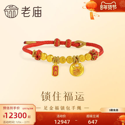 老庙黄金足金999福运手绳福字锁包大吉大利古法好运红绳悦己百搭