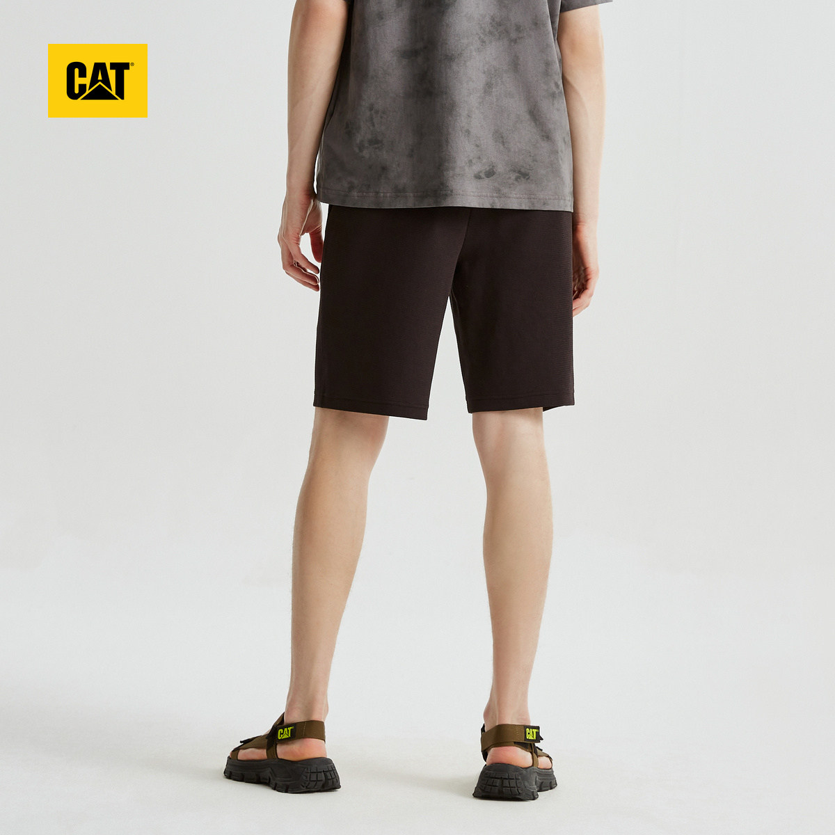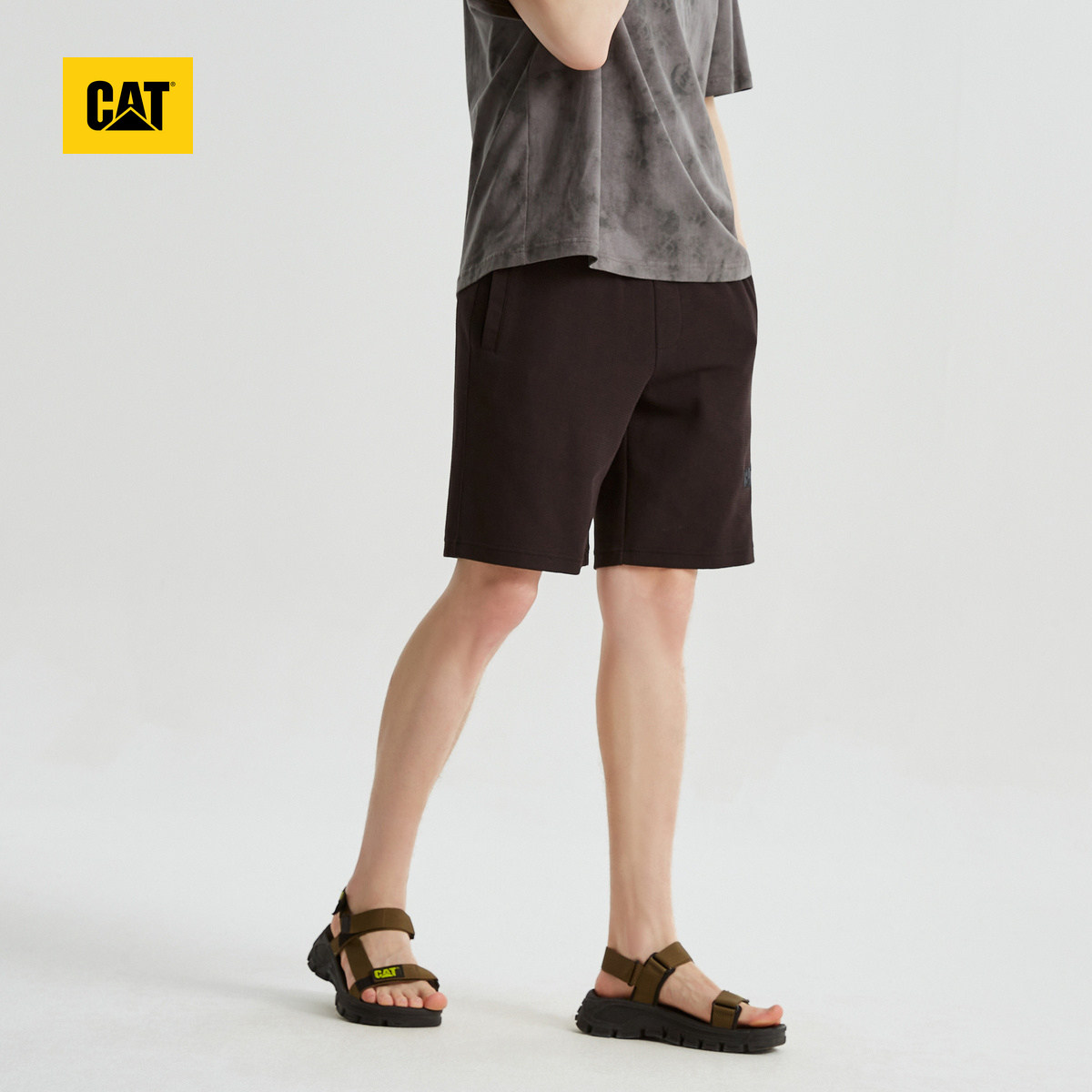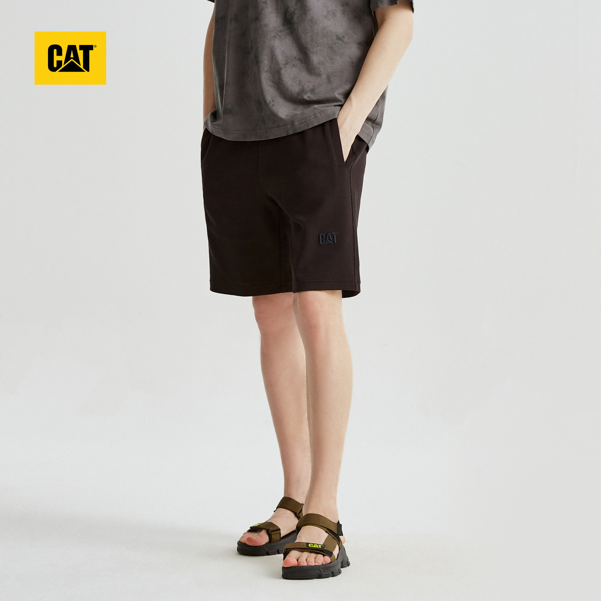 CAT卡特夏季男士户外休闲百搭肌理绣花修身针织短裤商场同款
