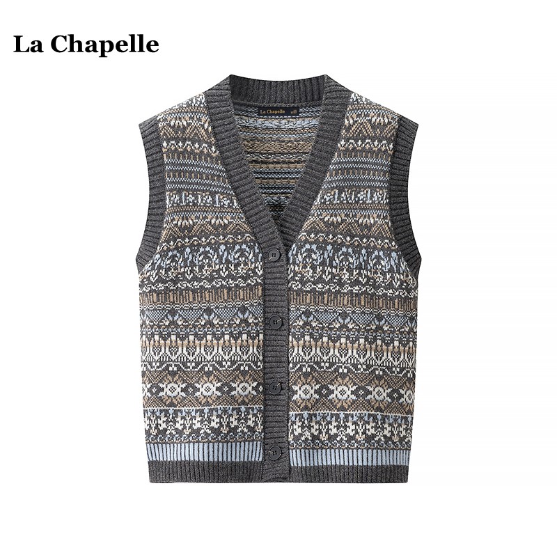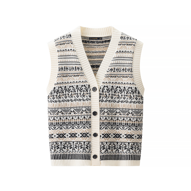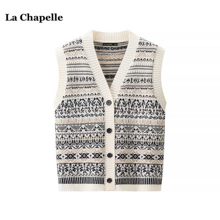 拉夏贝尔/La Chapelle费尔岛提花针织开衫马甲女春季新款叠穿坎肩