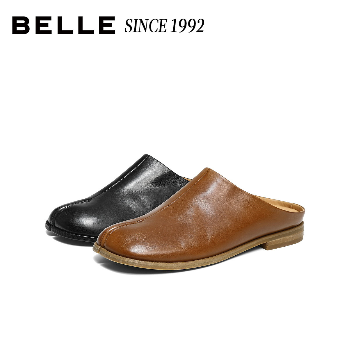 【92系列】百丽水洗牛皮分趾鞋女2026可外穿半包穆勒鞋H8035BT6