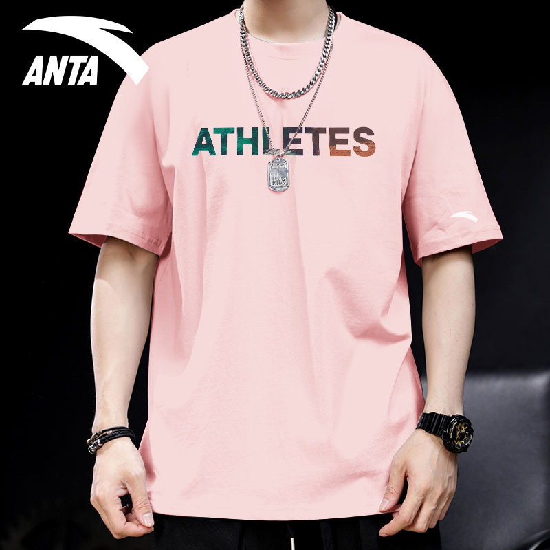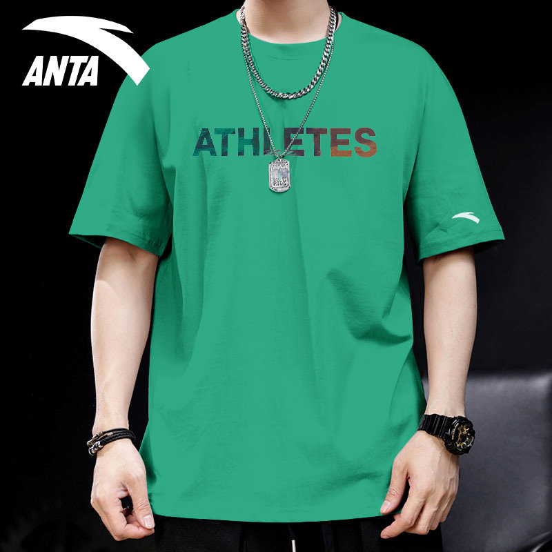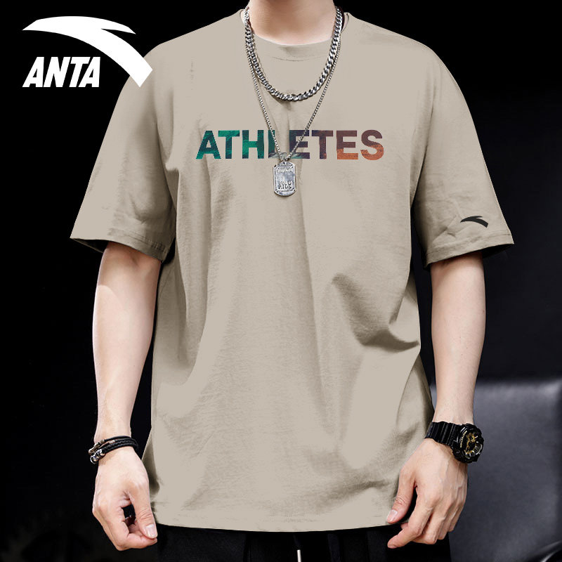 安踏T恤男2025夏季新款青少年宽松圆领透气短袖运动休闲针织上衣