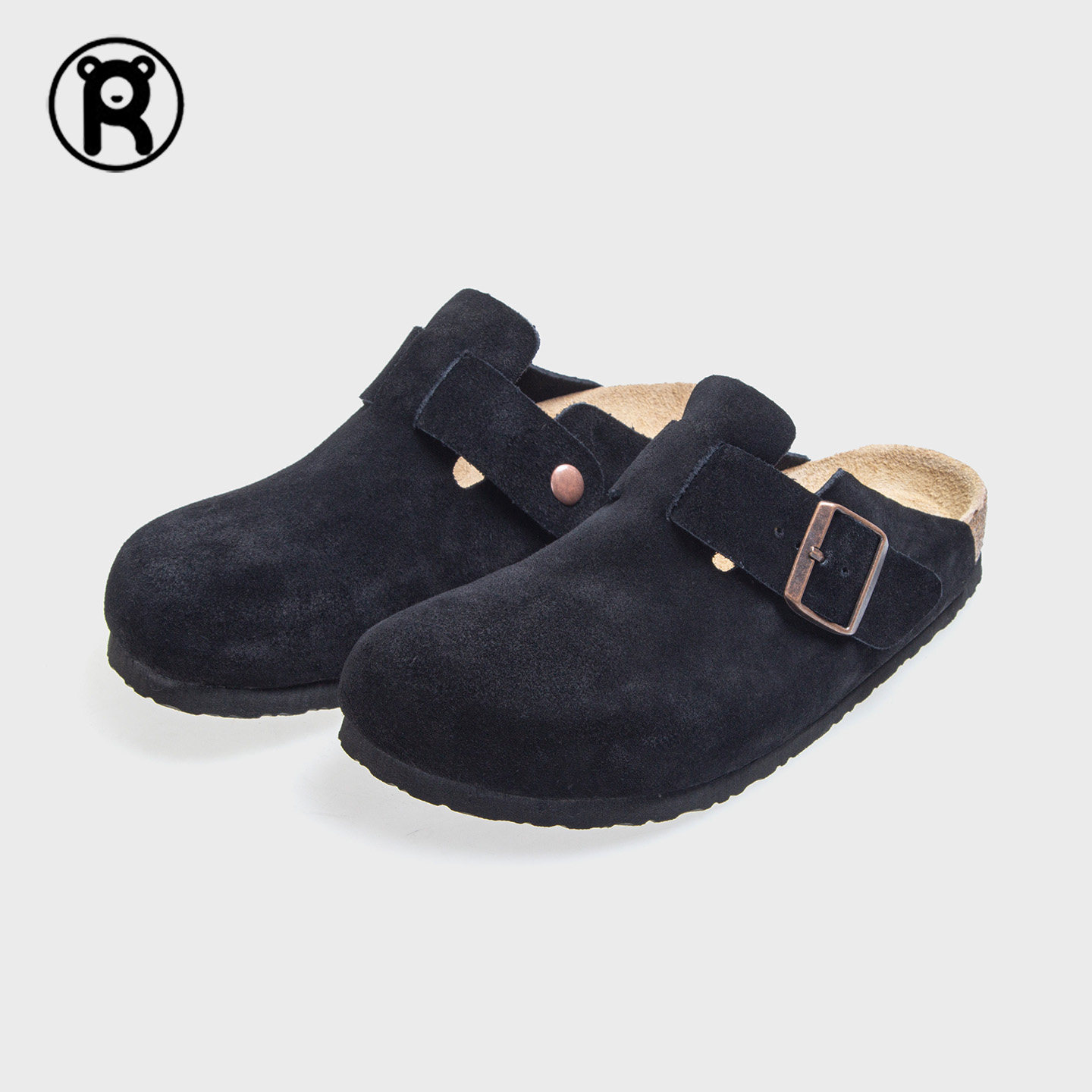 2026新款牛反绒厚底包头勃肯拖鞋女款半包鞋真皮博肯鞋女软木真皮