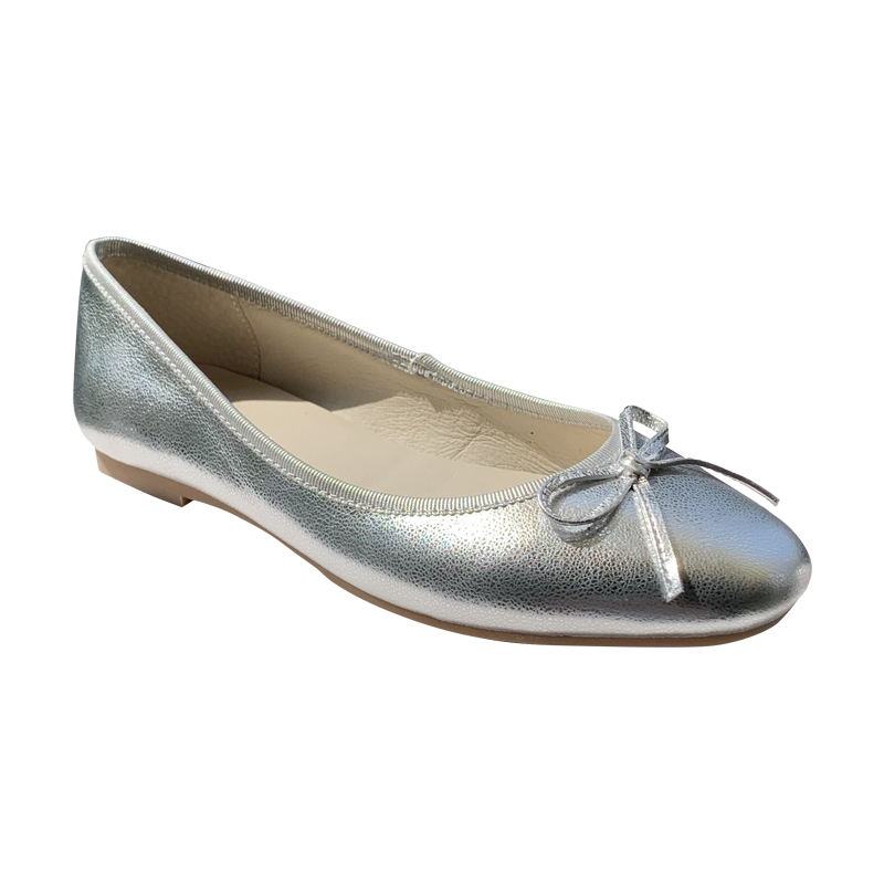 银色芭蕾平底鞋奶奶鞋浅口真皮