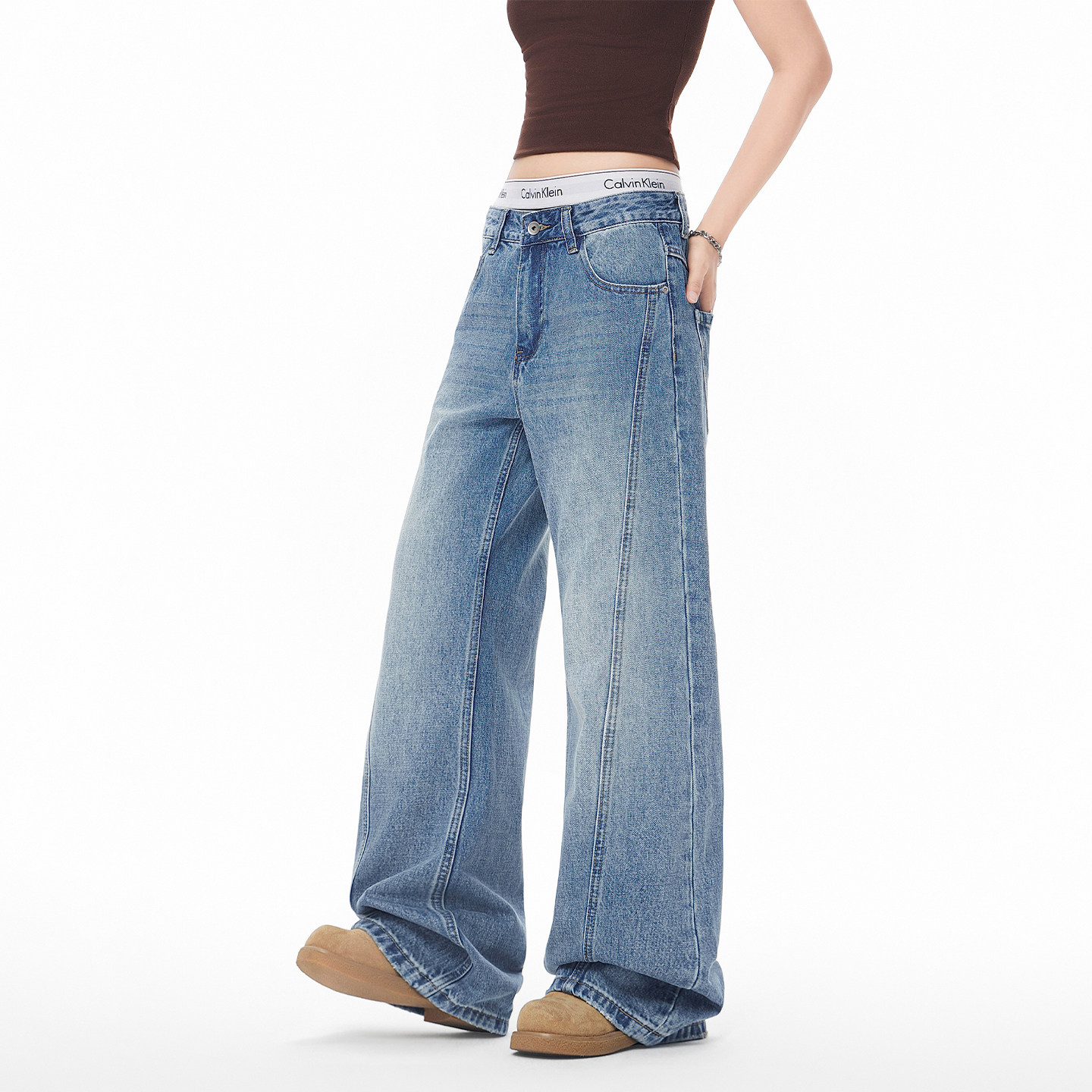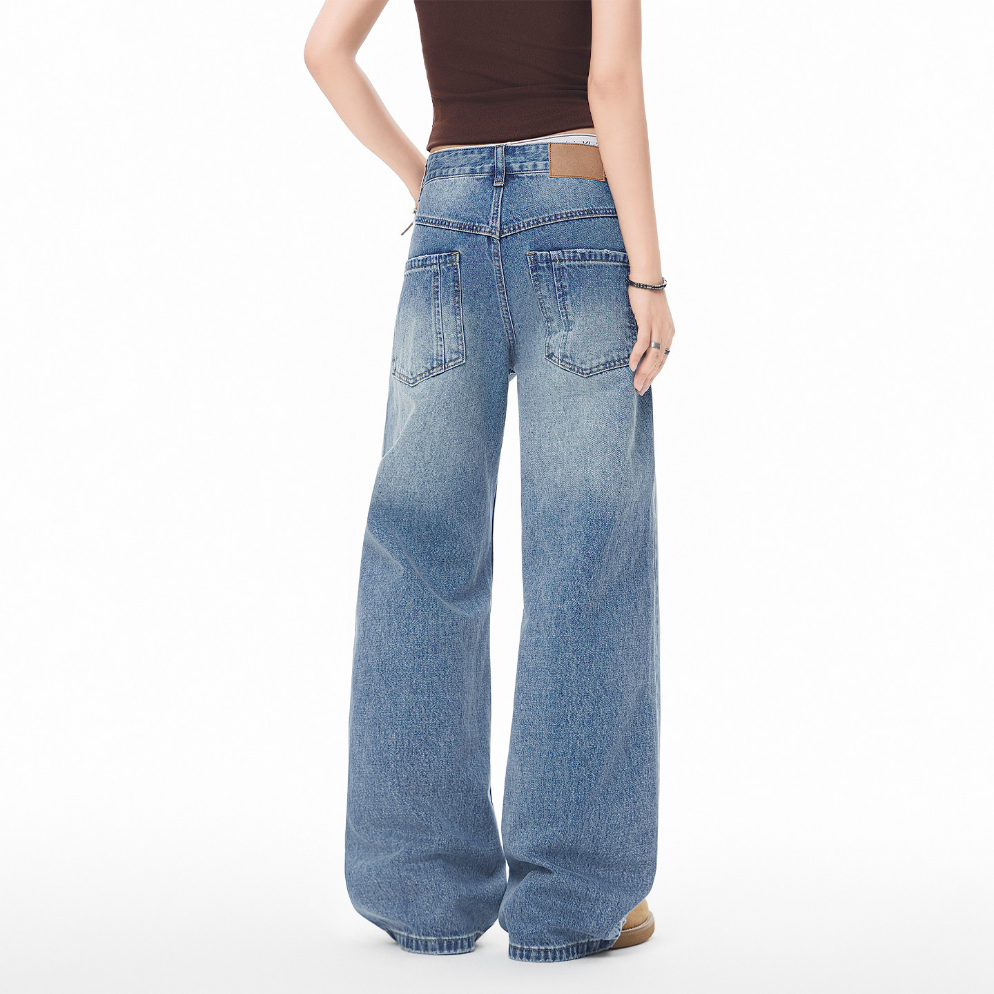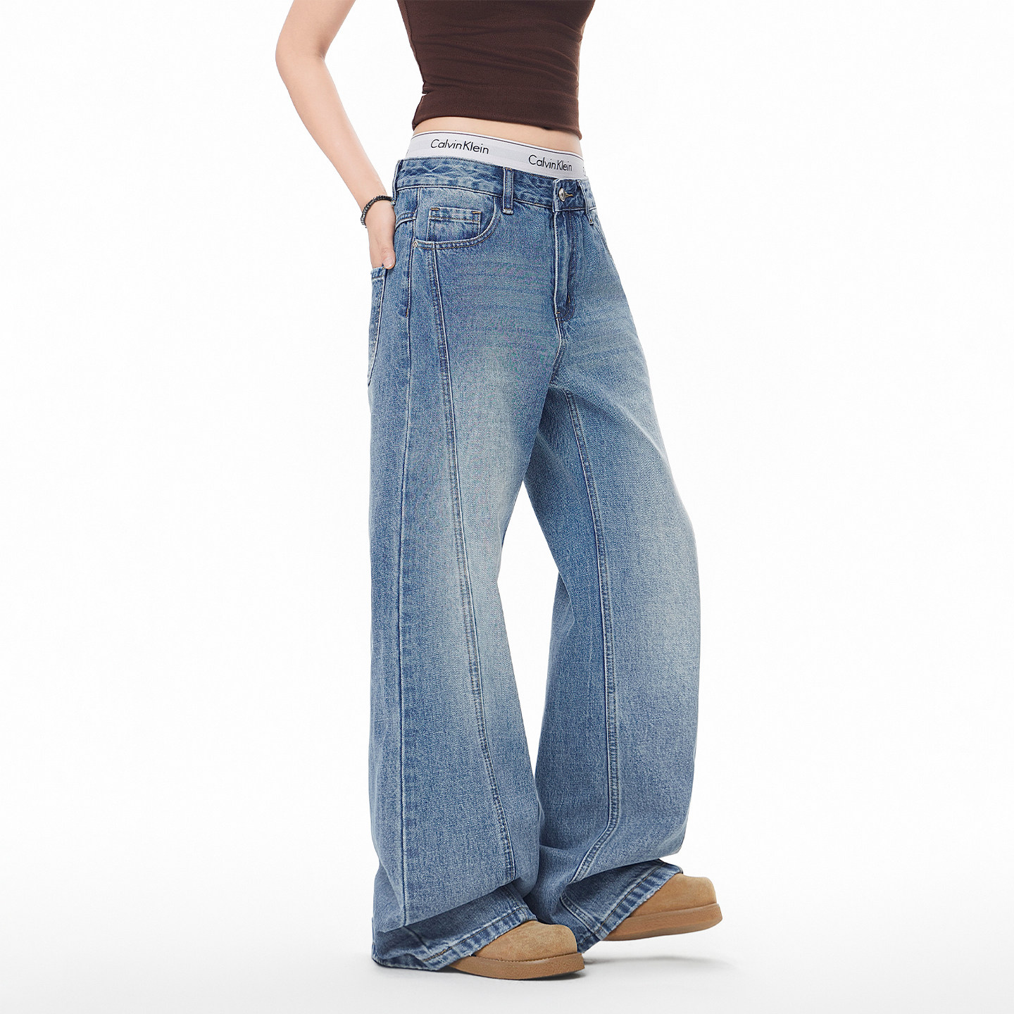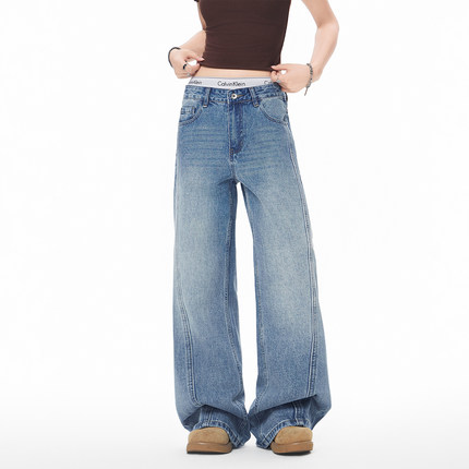 JIINOO美式解构拼接阔腿牛仔裤