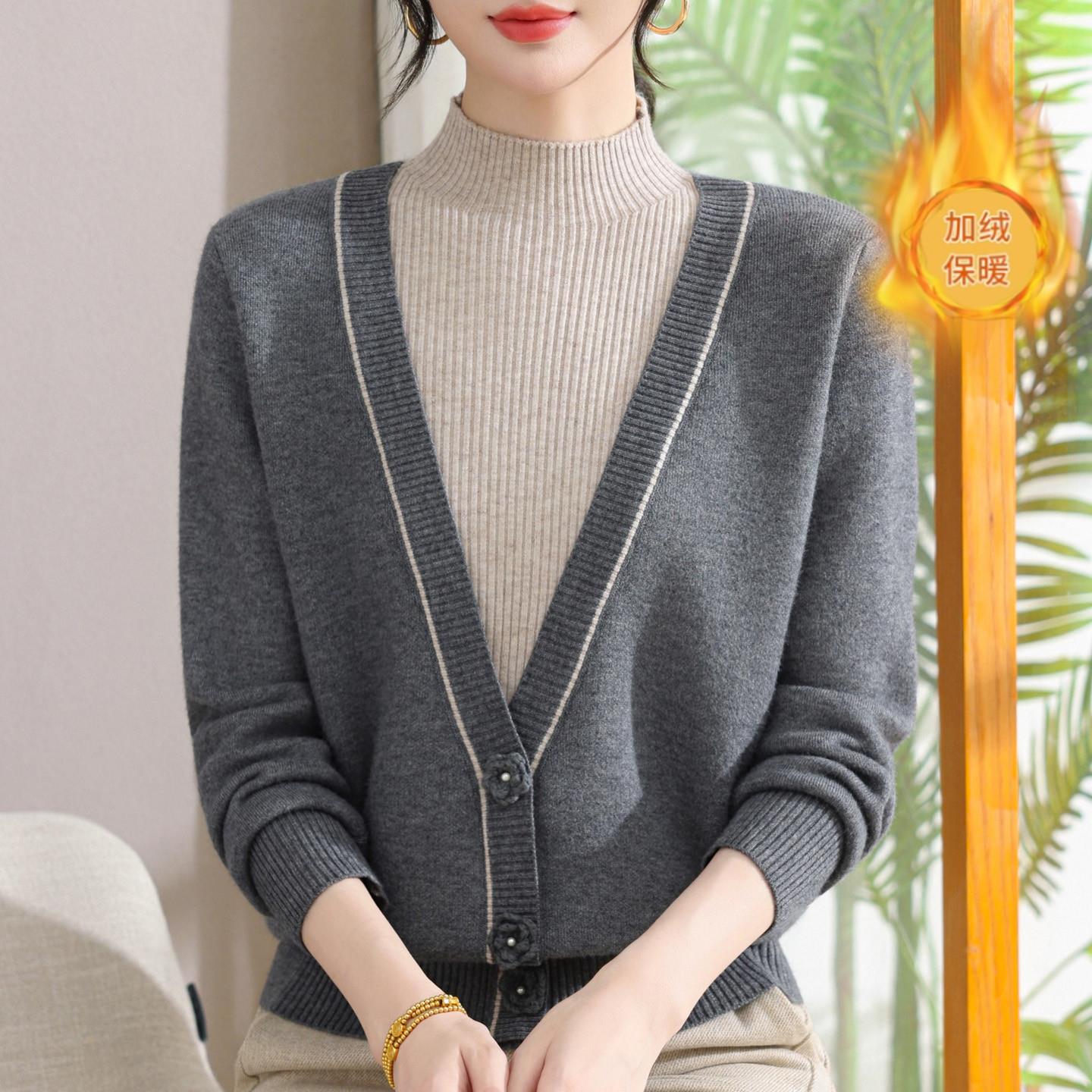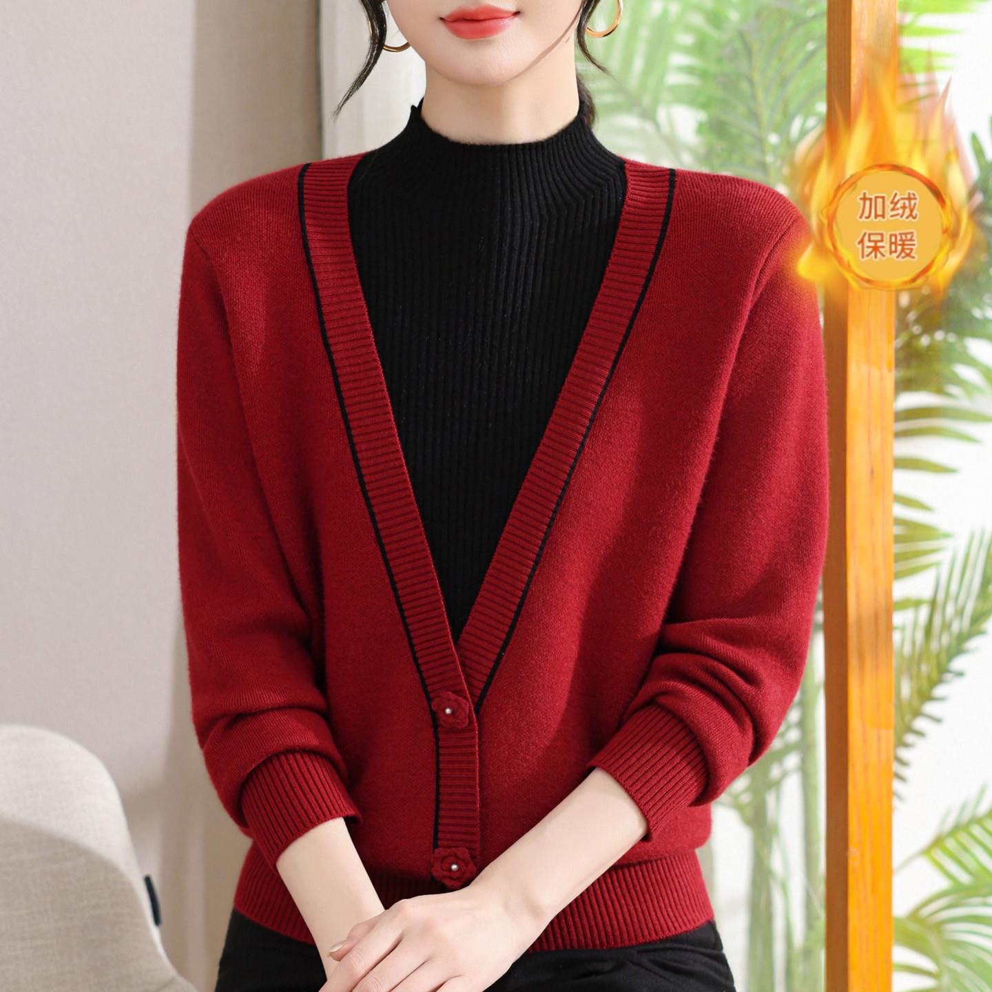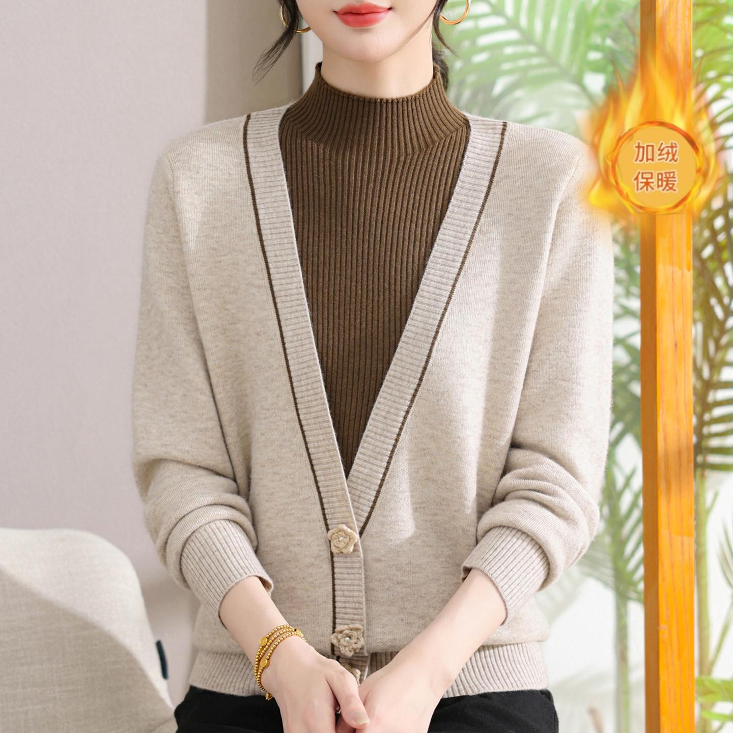 妈妈冬装2025新款假两件加绒毛衣中老年女半高领加厚内搭保暖上衣
