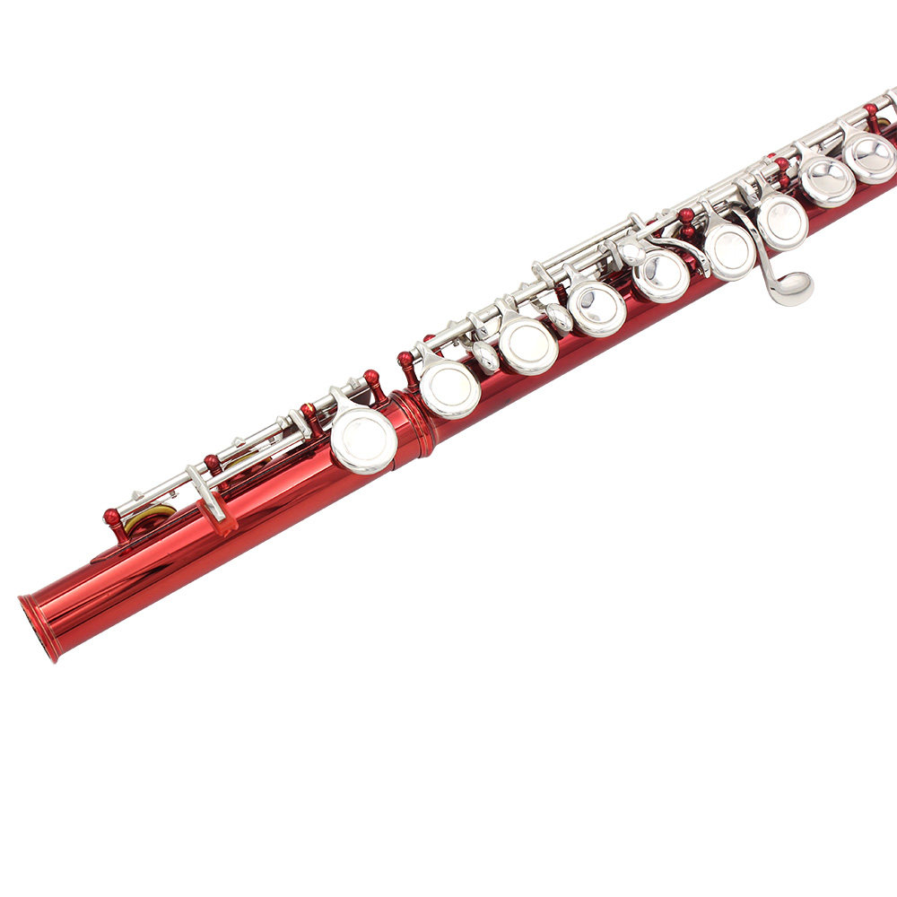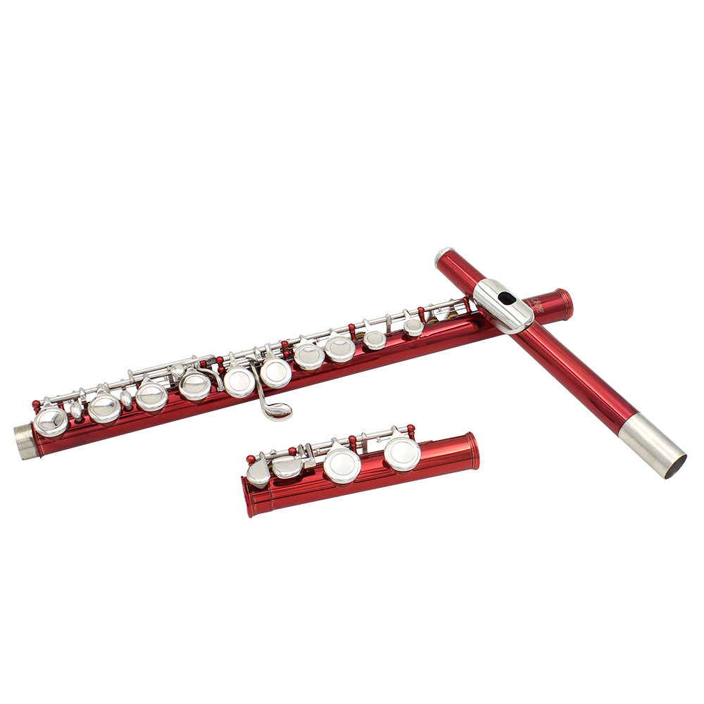 优质SLADE雷德16孔长笛C调白铜管体红色加E键法式按键意大利垫片