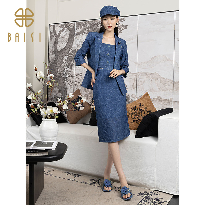 2025秋季新品百丝无袖一字领吊带长裙复古气质风情修身连衣裙女