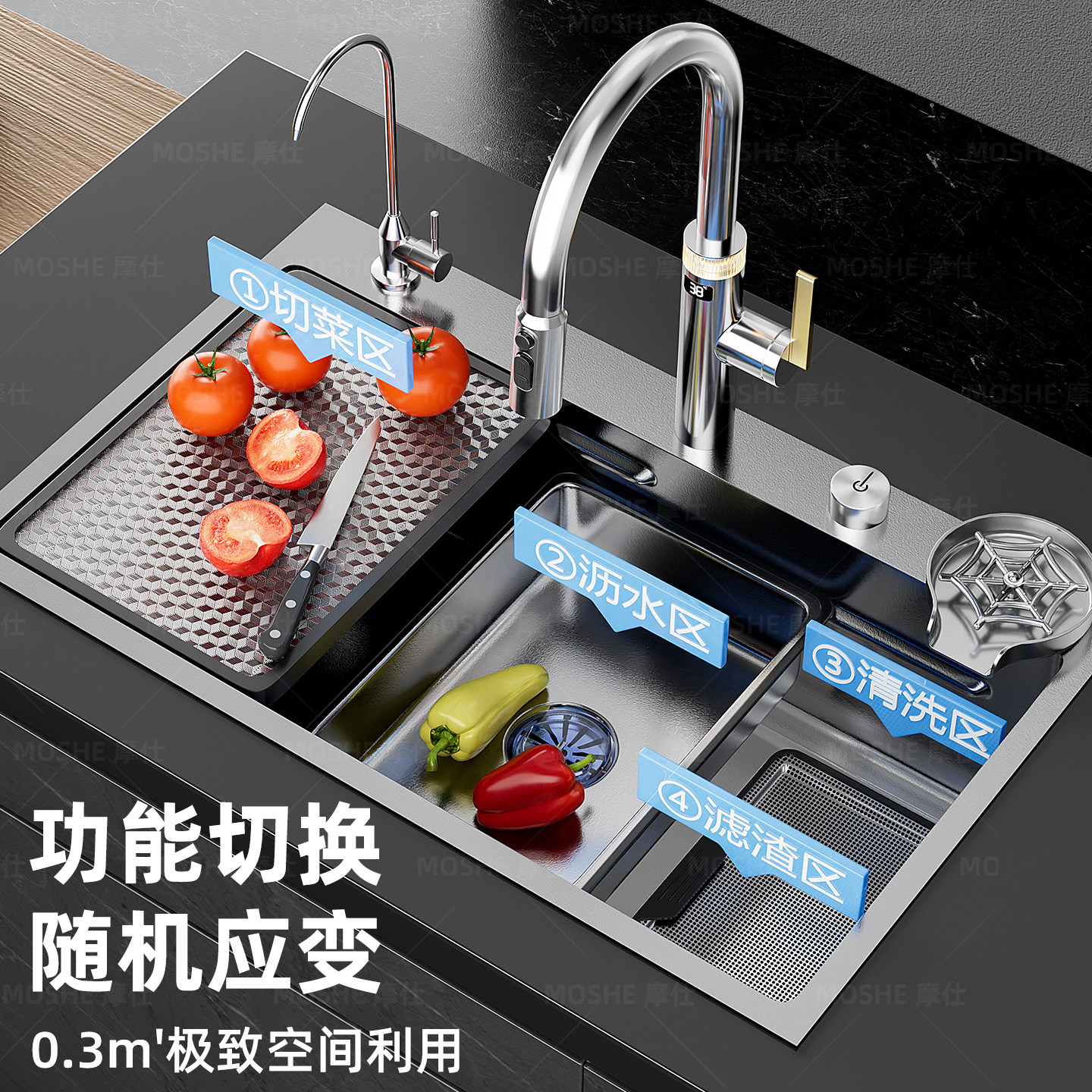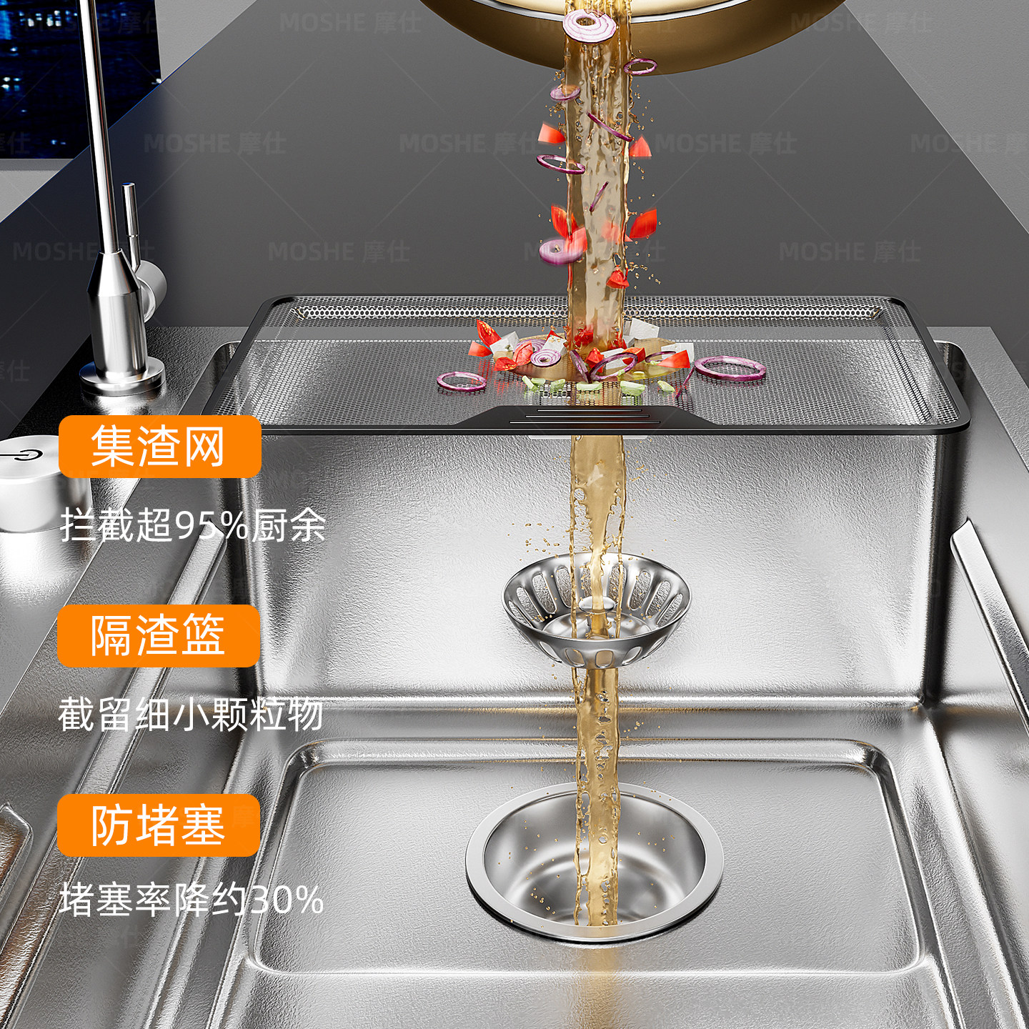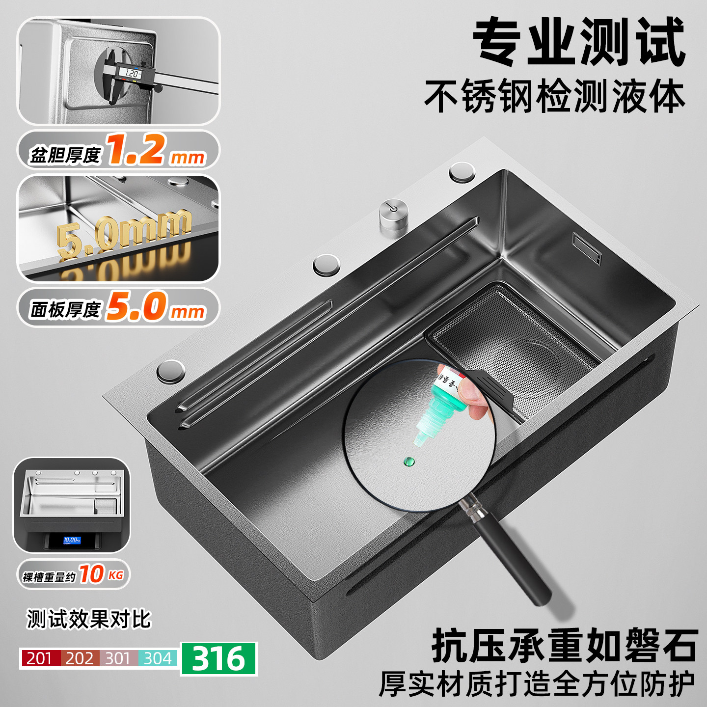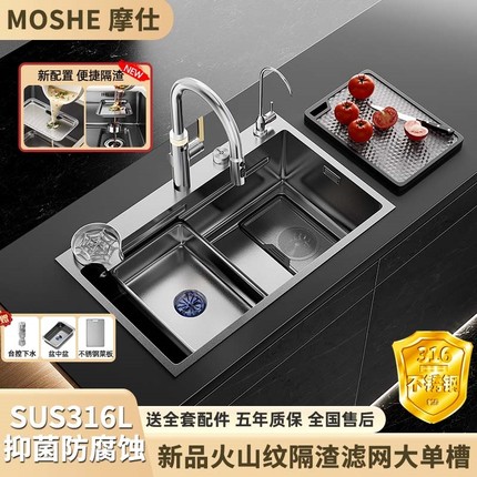 摩仕SUS316L不锈钢洗菜盆单槽厨房水槽大单槽台下盆洗碗槽洗菜池