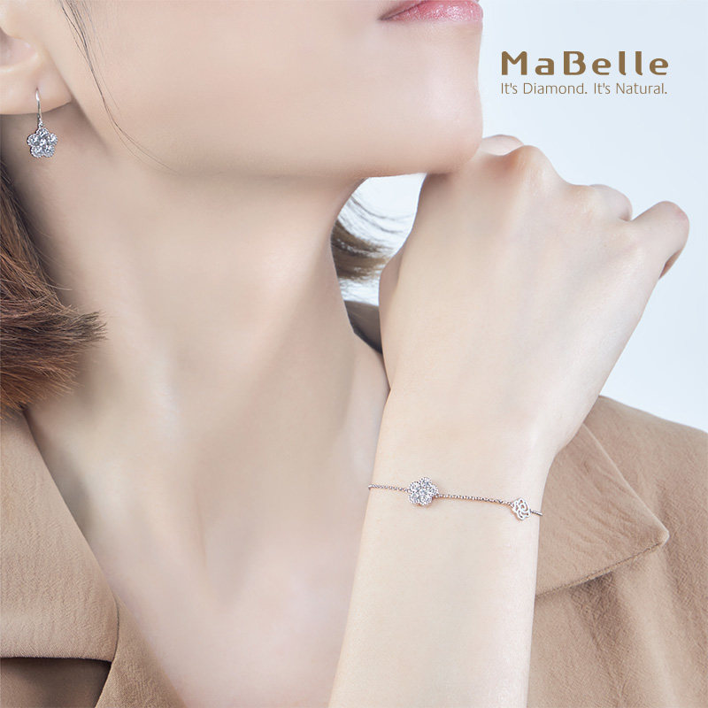MaBelle/玛贝尔18K白金 花漾系列钻石手链 长度18CM 优雅精致