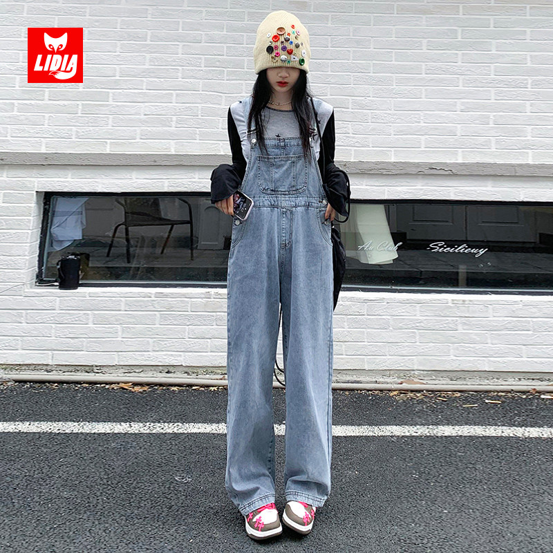 时尚连身裤牛仔背带裤女2025秋冬季网红减龄拖地直筒宽松阔腿裤子