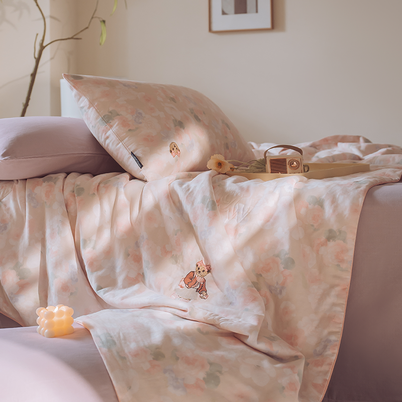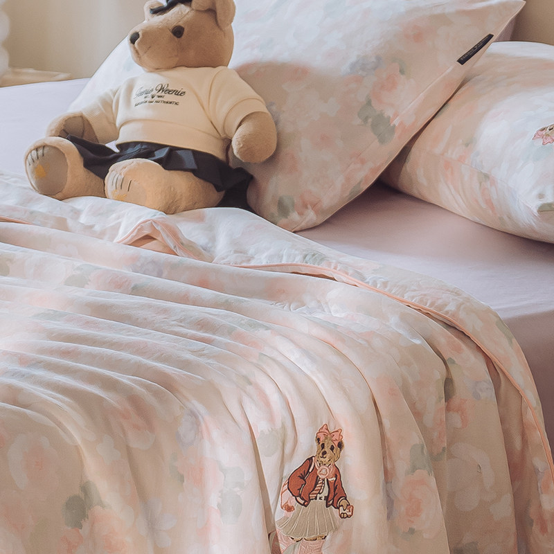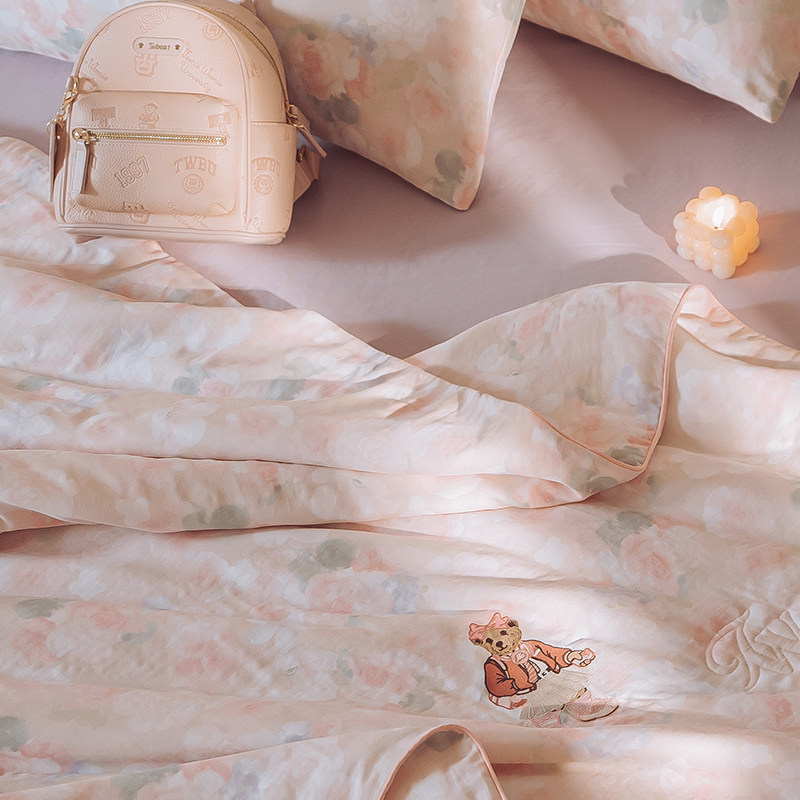 TeenieWeenie小熊刺绣田园风全棉双层纱夏被可机洗纯棉单人空调被