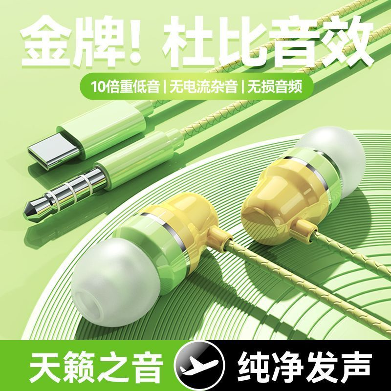 Type-c扁头耳机有线适用吃鸡游戏圆孔耳机重低音通用耳机线高音质