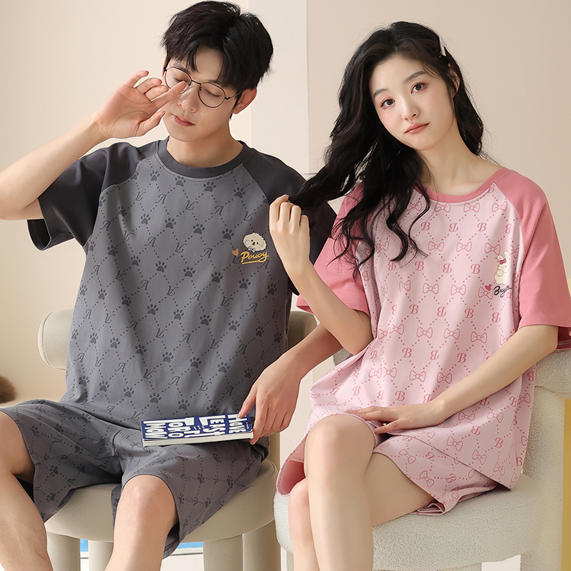 卡之恋睡衣情侣装夏季纯棉薄款短袖甜美少女粉色可爱套装男家居服