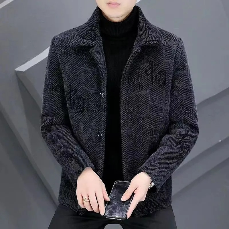 男士冬季外套加绒加厚呢子夹克秋冬新款保暖衣服男装短款毛呢大衣