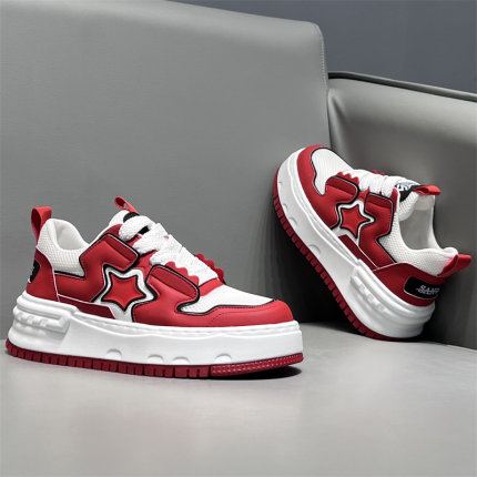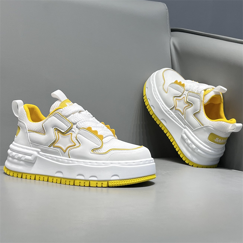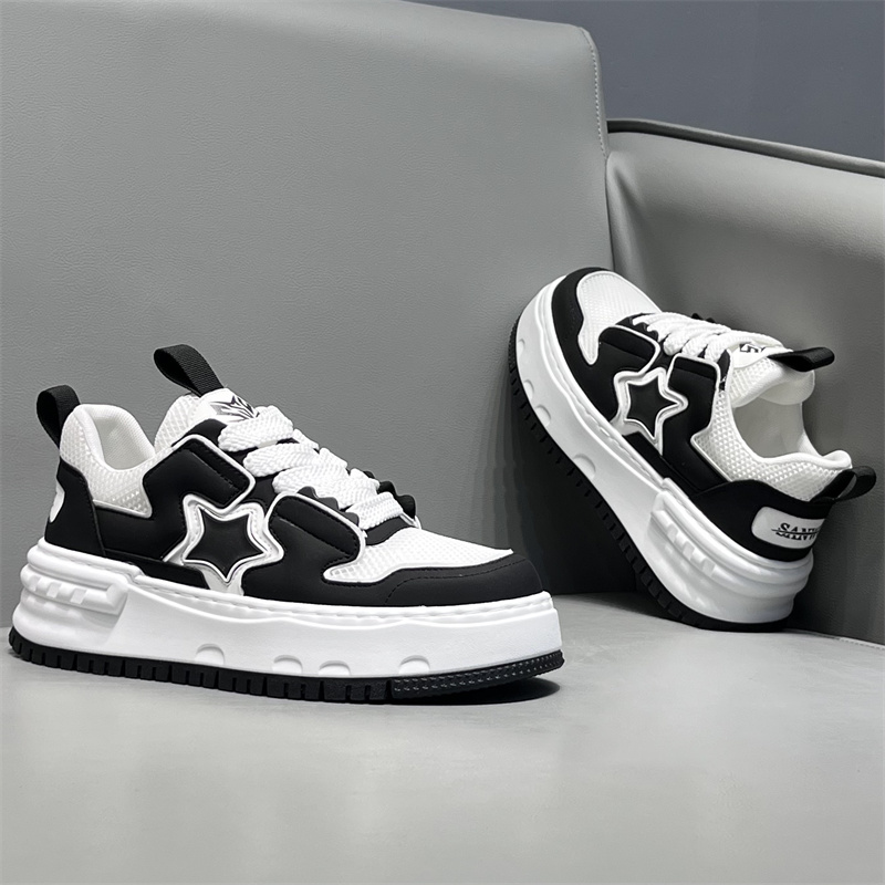 潮牌高街男鞋2025新款夏季透气网布厚底板鞋舒适运动休闲软底鞋子