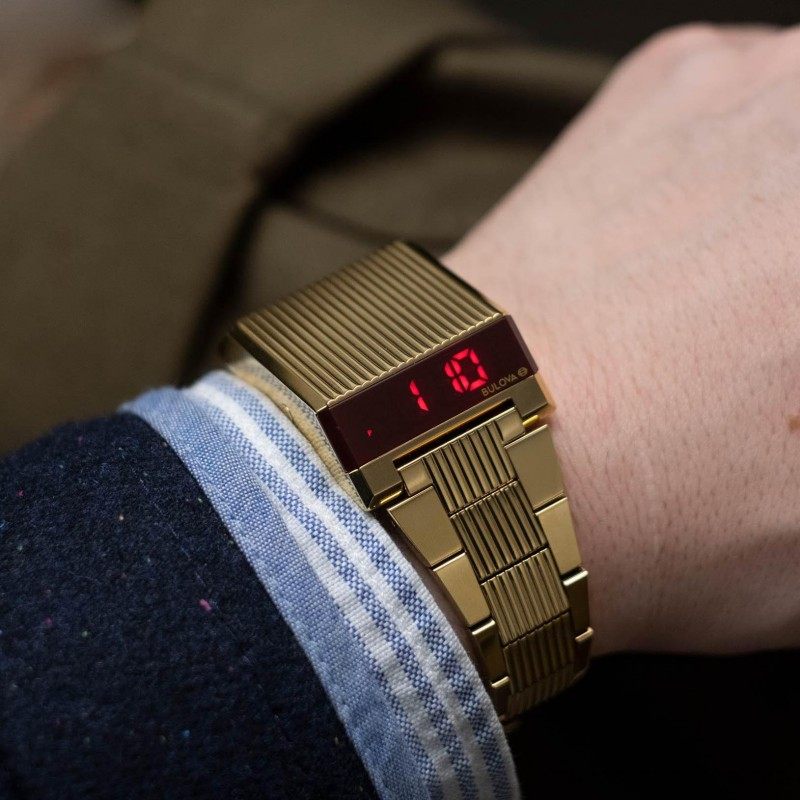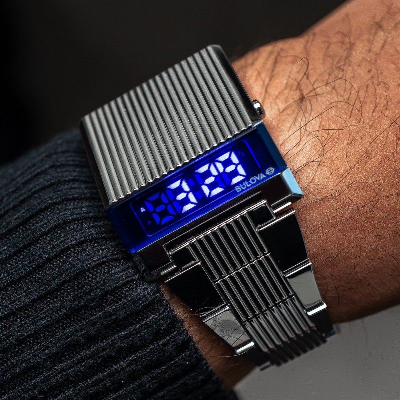 代购Bulova宝路华男表LED数字显示复古梯形表壳不锈钢个性男手表