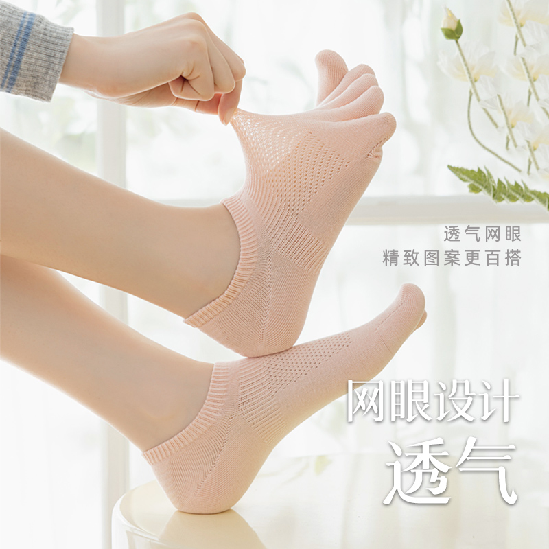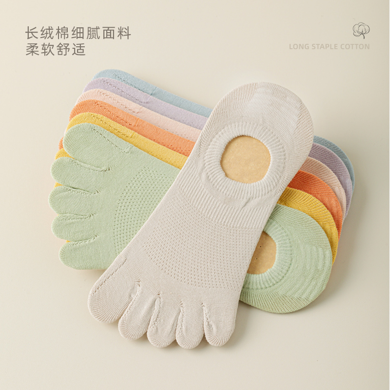 五指袜子女船袜春秋季纯棉防臭硅胶防滑不掉跟夏薄款隐形分趾短袜