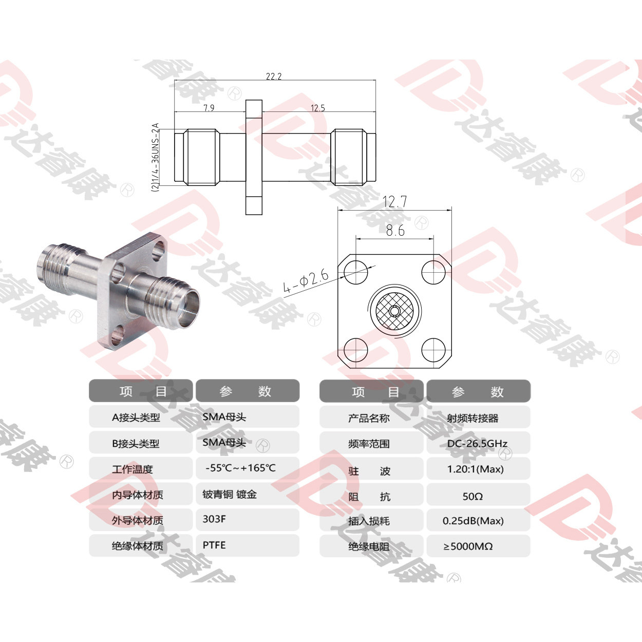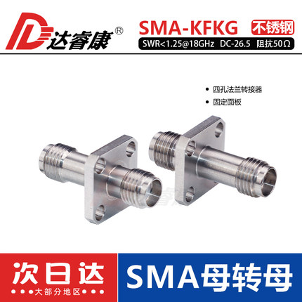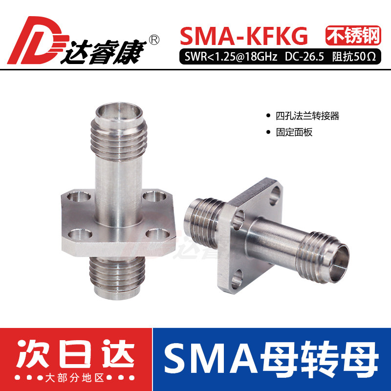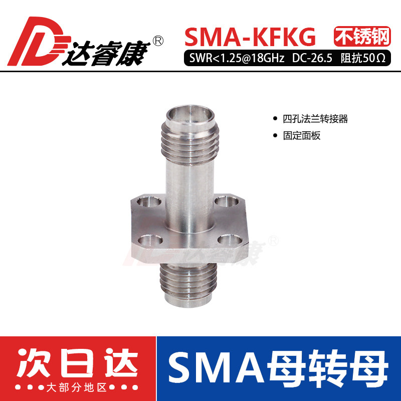SMA-KFKG不锈钢转接器 26.5G四孔法兰固定驻波低于1.25 SMA转接头